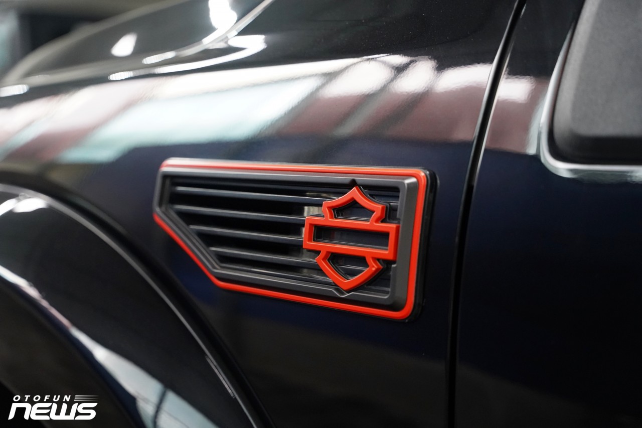 Về ngoại hình, mẫu xe này có nhiều khác biệt tạo nên những điểm nhấn không thể nhầm lẫn. Những chỉ dấu liên quan đến Harley-Davidson xuất hiện dày đặc trên thân xe. Đầu tiên, lưới tản nhiệt của xe được thiết kế lại, với kiểu dáng mang hơi hướng logo của hãng mô-tô Harley-Davidson cùng đường viền màu cam.