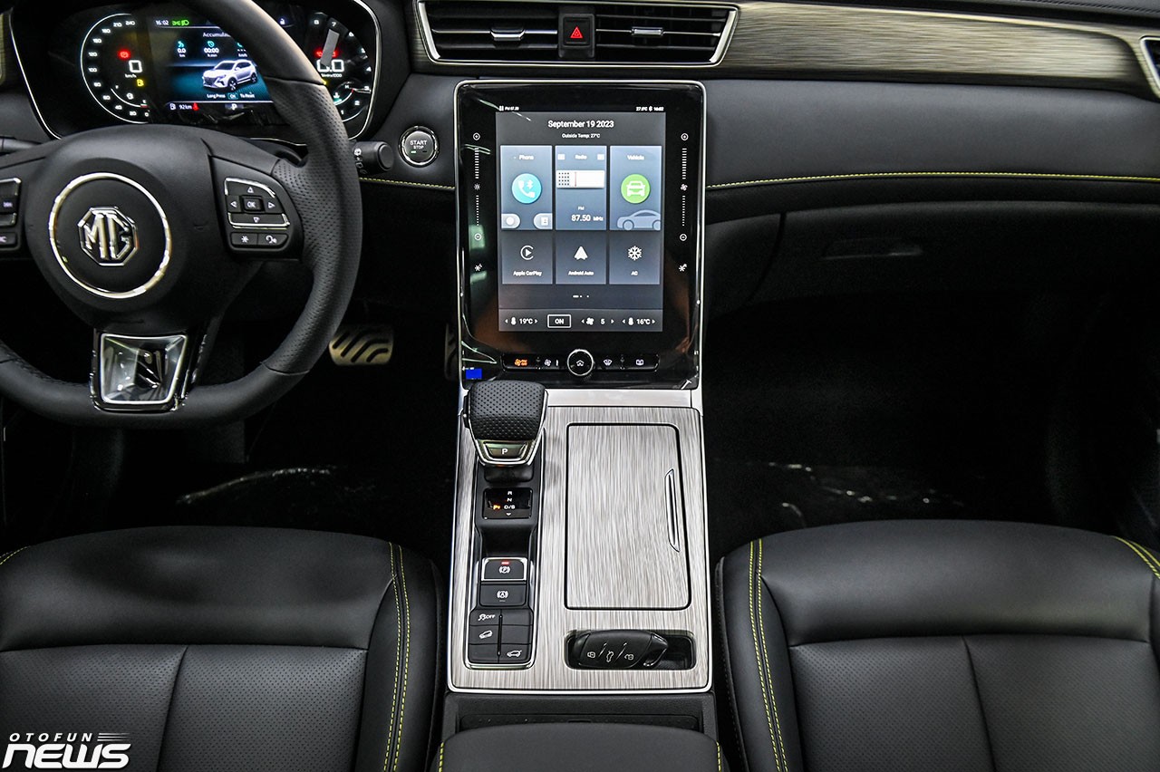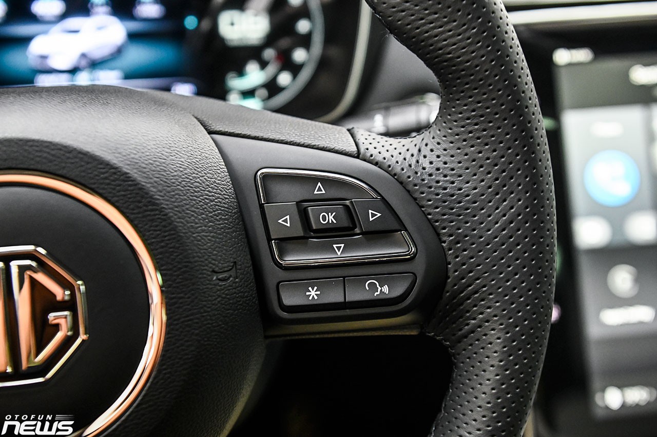 Vào bên trong, nội thất MG RX5 Lux trông khá cao cấp so với nhiều mẫu xe cùng tầm tiền. Ghế ngồi bọc da, hàng ghế trước chỉnh điện. Táp-lô trước, táp-li cửa và bệ điều khiển trung tâm có các tấm ốp giả gỗ với dạng vân khá tinh tế.