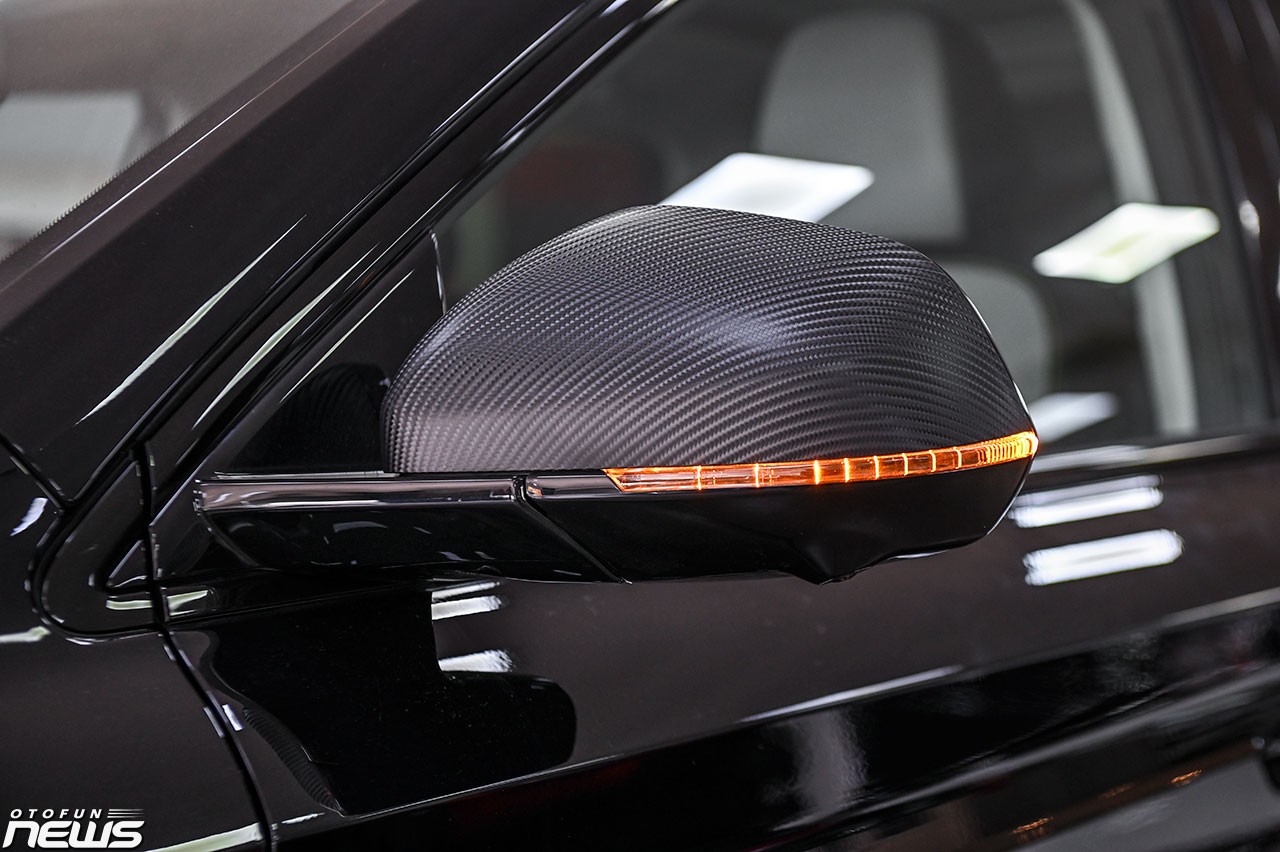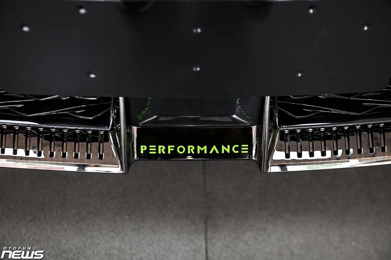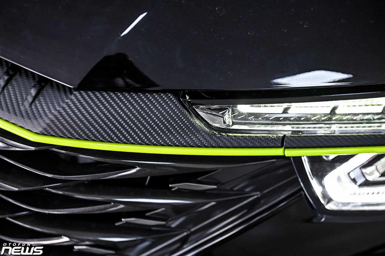 Ngoài ra, một điểm nhấn không thể bỏ qua là các chi tiết ốp vân sợi carbon cùng đường chỉ màu vàng tương phản ở đầu xe, đuôi xe hay hai bên hông. Xe cũng có thêm cánh đuôi gió cố định gắn ở trên cao phía cốp sau. Mâm xe 18 inch 5 chấu kép hình sao sơn hai tông màu.