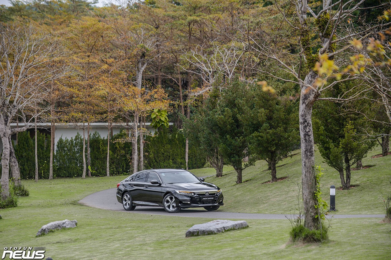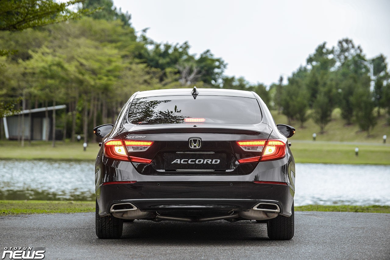 Các nhà thiết kế đã tô vẽ cho Accord kiểu dáng fastback của một chiếc coupe 4 cửa với phần mui xe kéo dài về phía sau và cốp xe làm ngắn lại. Bộ mâm 18 inch 5 chấu dạng xoáy hai tông màu xám và bạc là điểm nhấn không thể bỏ qua. Accord mang một vẻ tươi mới, trẻ trung so với sự trung tính có phần đứng tuổi ở các đối thủ cùng phân khúc.