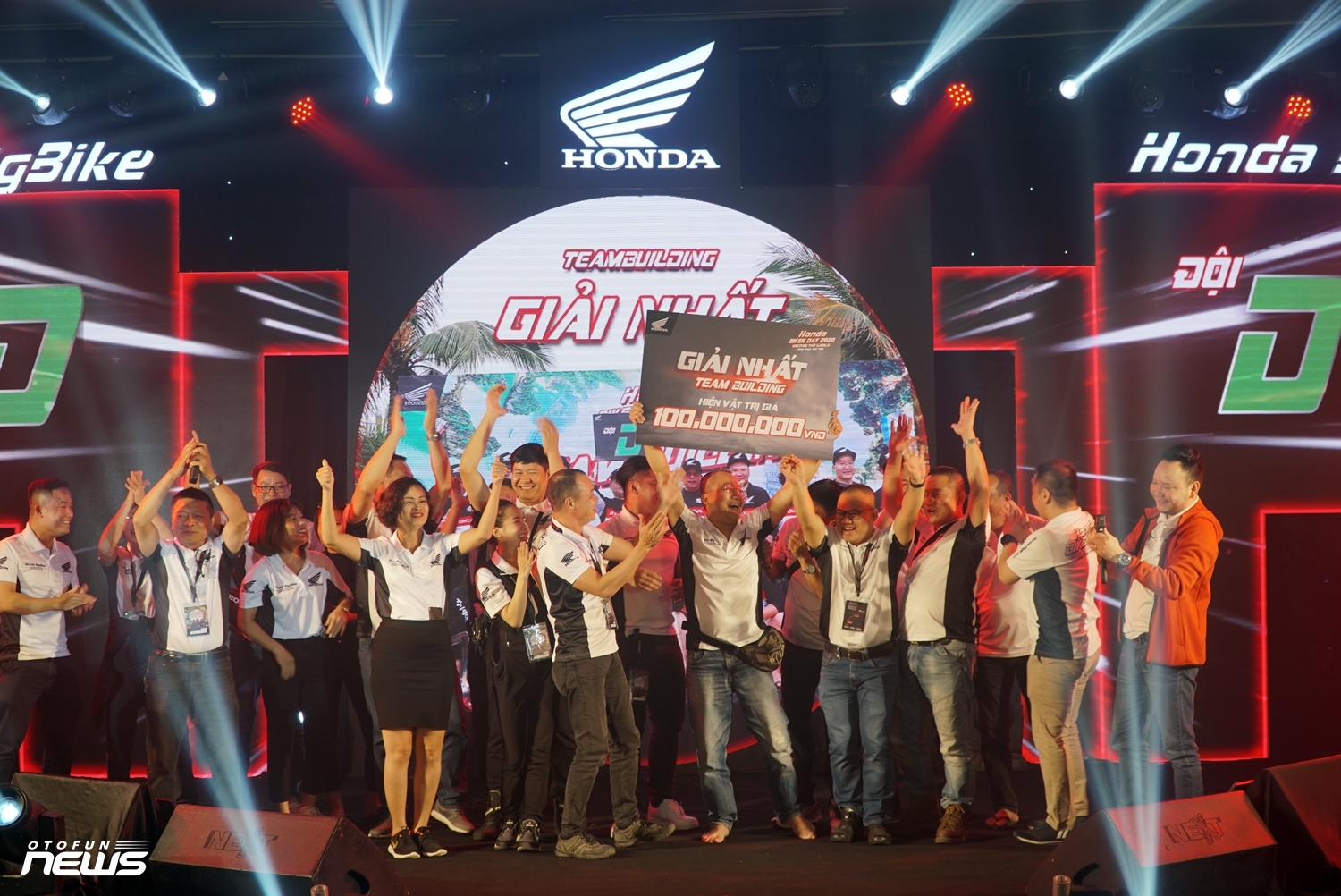 Buổi chiều cùng ngày, các thành viên tham gia Honda Biker Day 2020 được tham gia hoạt động vui chơi đồng đội team building. Năm nhóm sẽ tranh tài cùng nhau với nhiều trò chơi hấp dẫn được thiết kế để phát huy tinh thần đồng đội. Phần thưởng cho nhóm có màn thể hiện tốt nhất là giải thưởng hiện vật trị giá 100 triệu đồng thuộc về đội D.