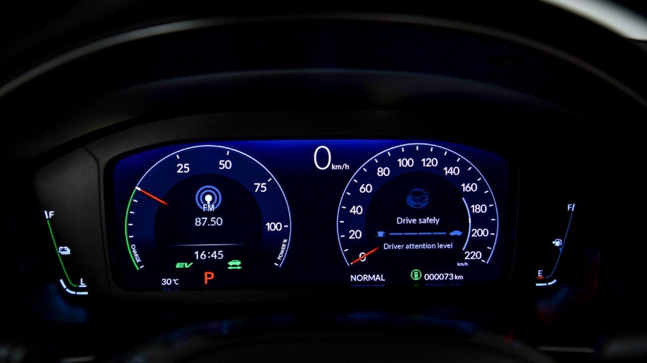 Vào bên trong, xe trang bị cụm đồng hồ hiển thị dạng kỹ thuật số với màn hình kích thước 10,2 inch hiển thị sắc nét. Màn hình giải trí cảm ứng 9 inch hỗ trợ kết nối bluetooth, Apple Car Play và Andoird Auto. Điều hòa tự động, ghế ngồi kết hợp da lộn và da tổng hợp, phiên bản RS có chỉ thêu màu đỏ. Hàng ghế sau có cửa gió điều hòa riêng biệt, hai cổng USB, ghế ngồi có thể gập 60:40. Civic e:HEV cũng được trang bị gói công nghệ an toàn Honda Sensing tiên tiến.