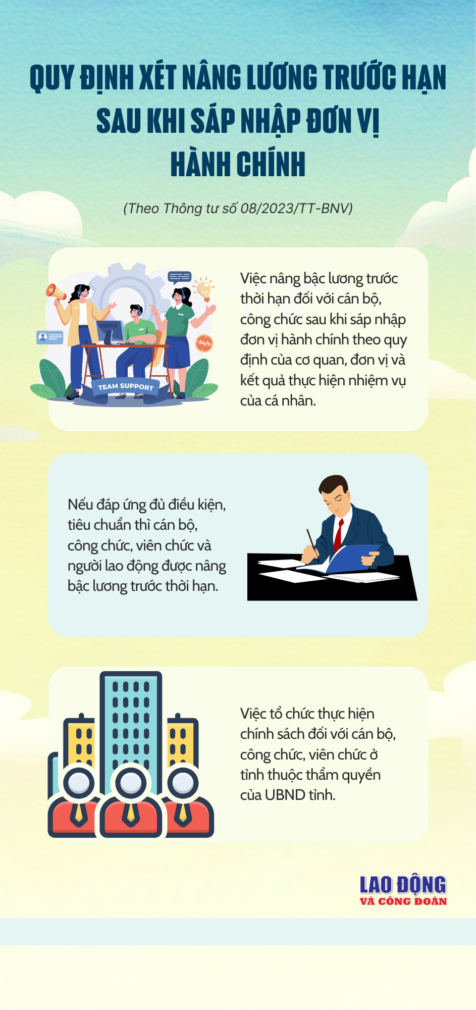 Khi cơ cấu tổ chức thay đổi do sáp nhập, chế độ nâng lương trước thời hạn của cán bộ, công chức, viên chức và người lao động cũng chịu ảnh hưởng đáng kể.