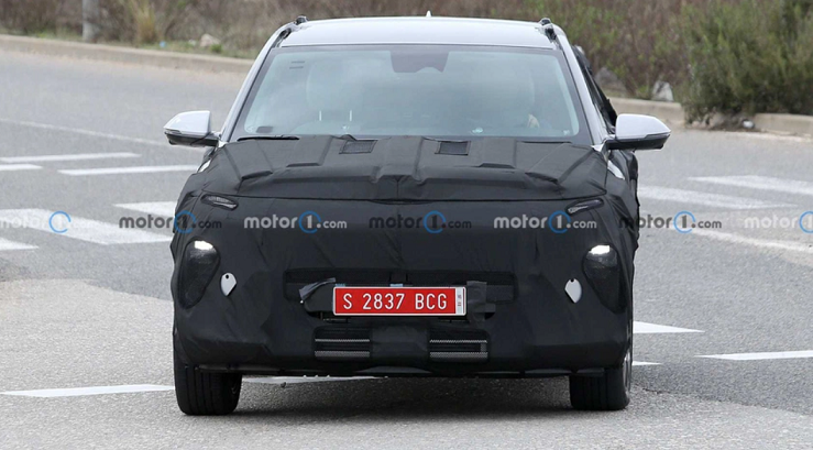 Bên trong xe được trang bị đồng hồ dạng màn hình kỹ thuật số. Bệ tỳ tay cũng có sự khác biệt với thiết kế mềm mại và sang trọng hơn Kona hiện hành, khu vực ốp cửa cũng có thêm các họa tiết khác màu tạo điểm nhấn, phần còn lại của cabin được ngụy trang khá kín.