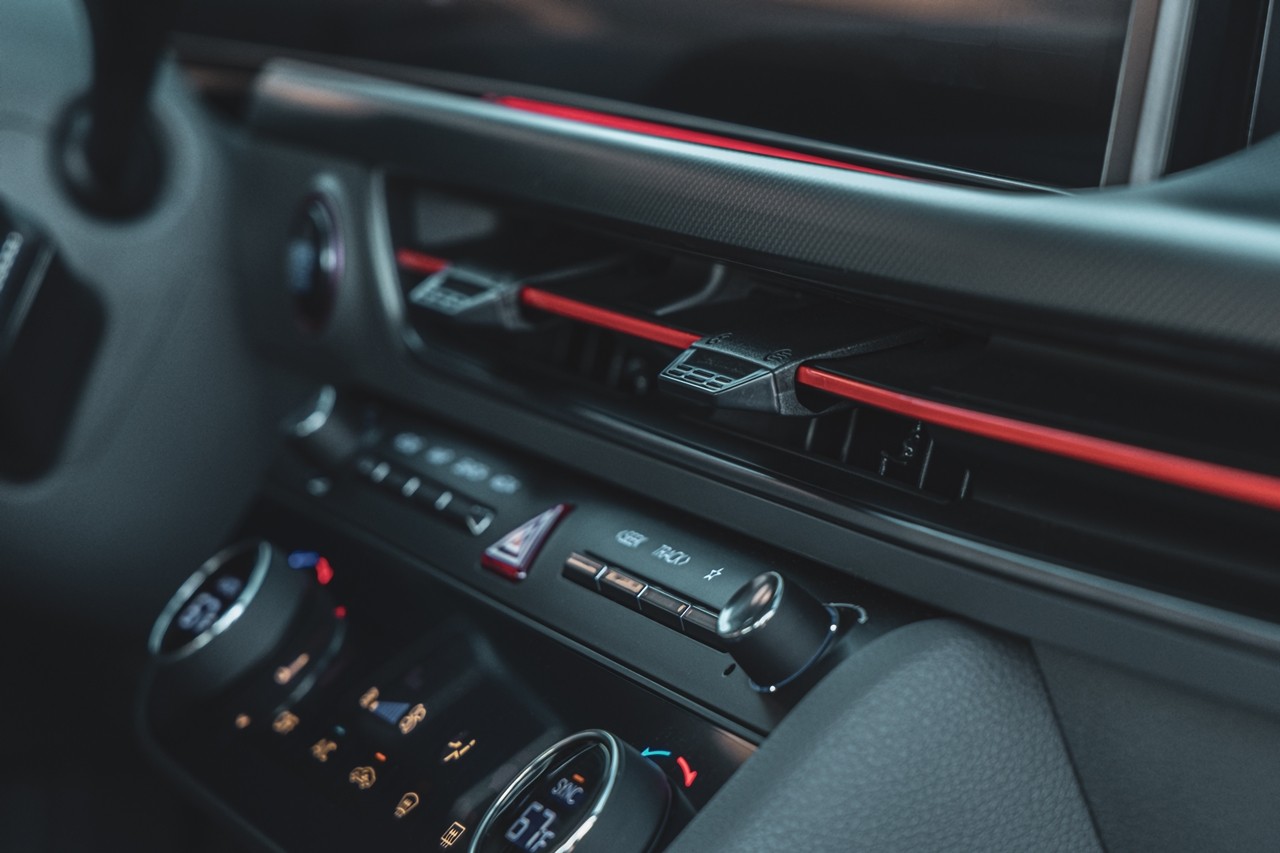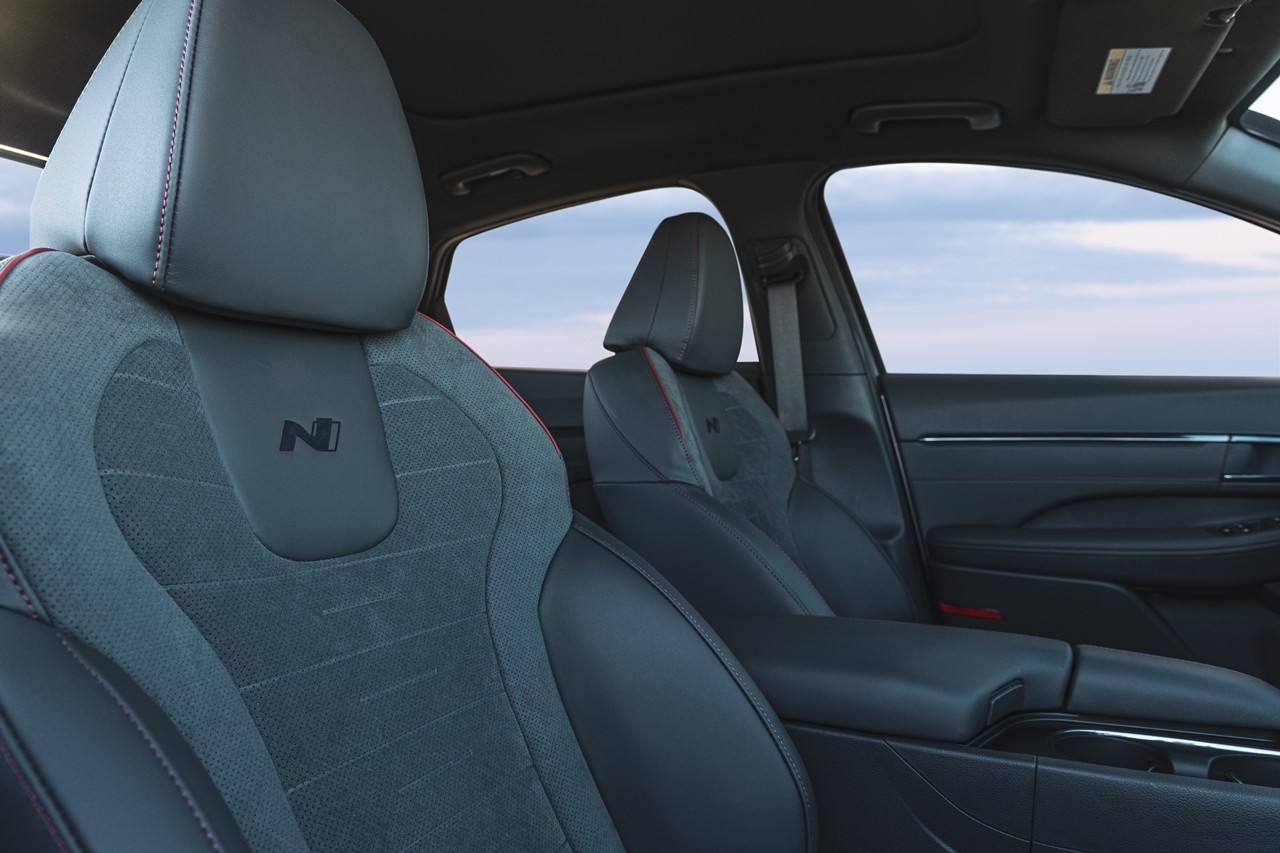 Vô-lăng ba chấu với loạt phím bấm chức năng với logo chữ H quen thuộc không còn xuất hiện. Hệ thống hiển thị gồm một cụm hai màn hình cong nối liền mạch với nhau. Bao gồm màn hình hiển thị sau vô-lăng kích thước 12,3 inch và màn hình giải trí cảm ứng 12,3 inch hỗ trợ kết nối Apple Car Play hoặc Android Auto. Hệ thống này kết hợp với dàn âm tanh 12 loa đến từ Bose.