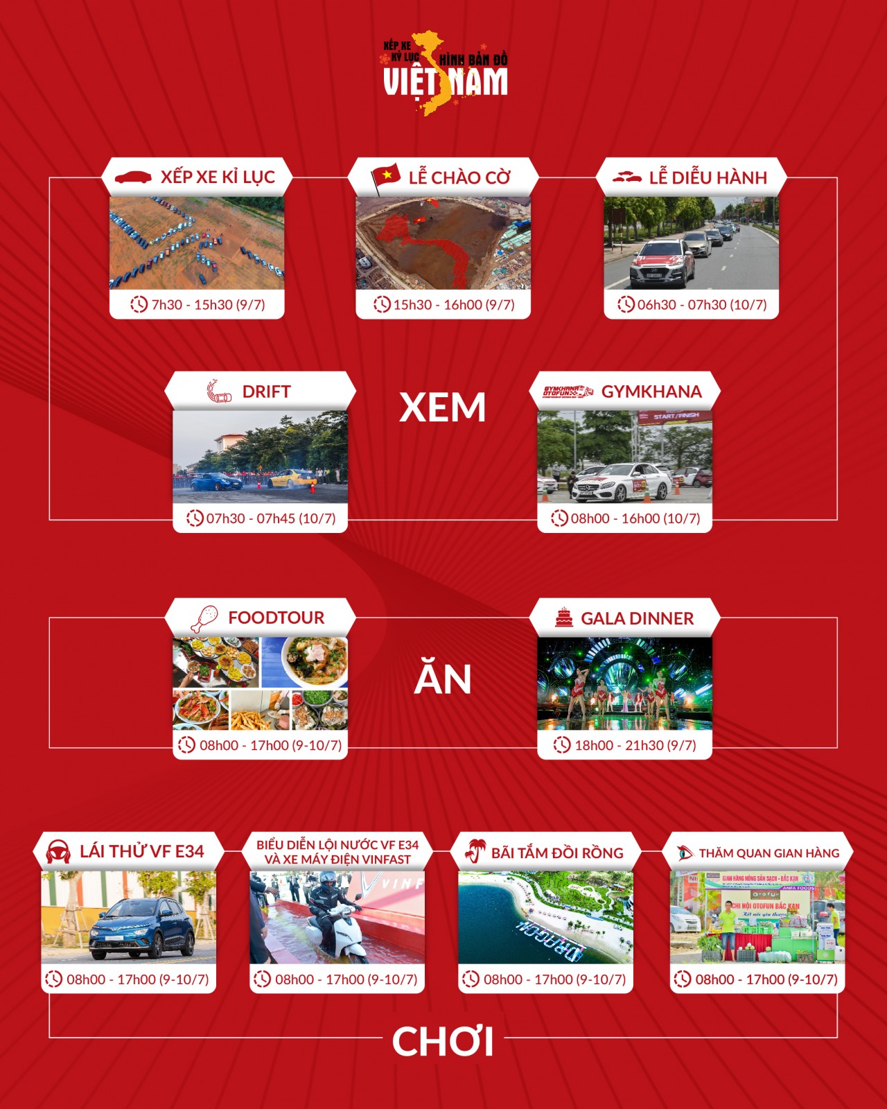 [Infographic] Các hoạt động hấp dẫn tại chương trình Xếp xe kỷ lục hình bản đồ Việt Nam
