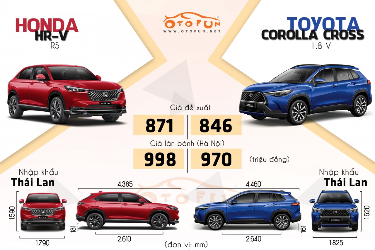 [Infographic] So sánh Honda HR-V RS và Toyota Corolla Cross 1.8V