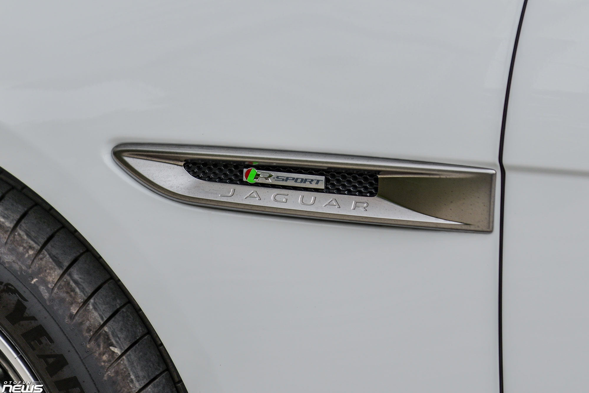 Phiển bản thể thao R-Sport ấn tượng hơn với cản trước, cản sau góc cạnh. Hai bên cản trước tích hợp hốc hút gió, cản sau có thêm hệ thống hai ống xả đặt cân đối. Hông xe xuất hiện thêm khe gió thể thao cùng ký hiệu R-Sport. Jaguar XF R-Sport sử dụng bộ mâm 18 inch 5 chấu thiết kế hình hoa kiểu 5033 với hai màu tương phản.