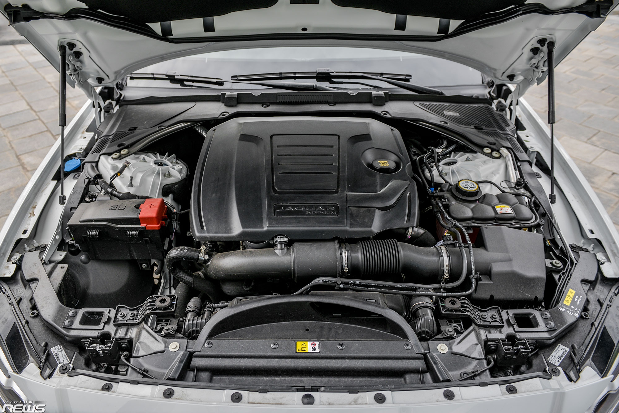 Về vận hành, chiếc Jaguar XF R-Sport này sử dụng động cơ Ingenium I4 2.0L. Cỗ máy này cho công suất tối đa 200 mã lực và mô-men xoắn cực đại 320Nm. Jaguar cung cấp cho mẫu xe này hộp số tự động 8 cấp và hệ dẫn động cầu sau tiêu chuẩn. Sự kết hợp này giúp chiếc XF có thể tăng tốc 0-100km/h trong 7,9 giây, tốc độ tối đa 234km/h.