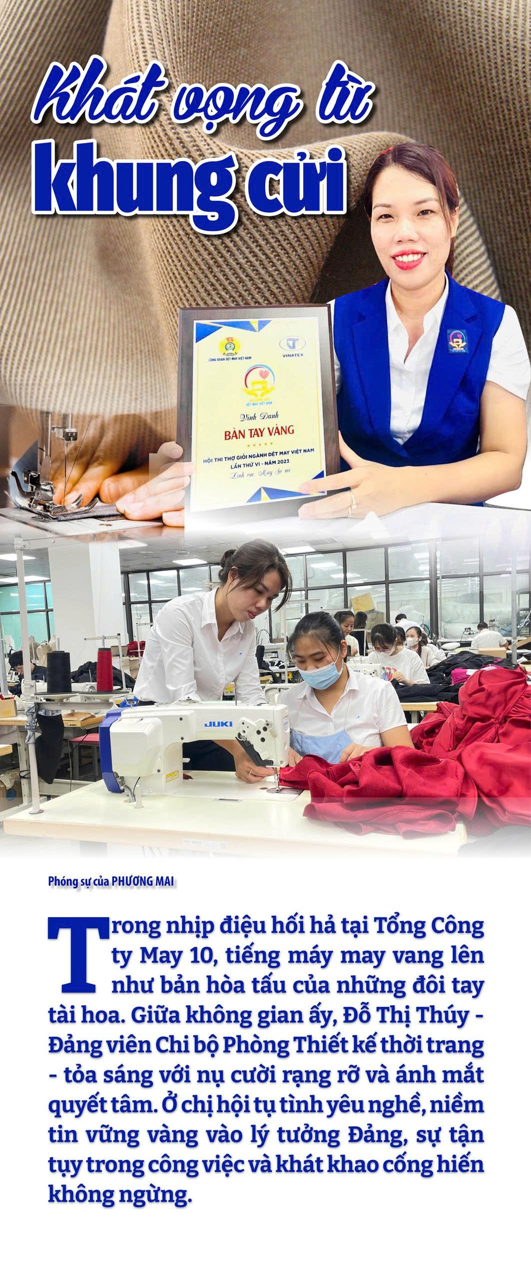Ngày được kết nạp Đảng đánh dấu bước ngoặt lớn trong cuộc đời chị. Không còn đơn thuần là một công nhân, chị Thúy nỗ lực không ngừng để hoàn thiện bản thân, nâng cao tay nghề và lan tỏa tinh thần trách nhiệm đến đồng nghiệp. Từ công nhân may, chị được tín nhiệm giao nhiệm vụ cán bộ xưởng, rồi trở thành nhân tố quan trọng của Phòng Thiết kế thời trang. |