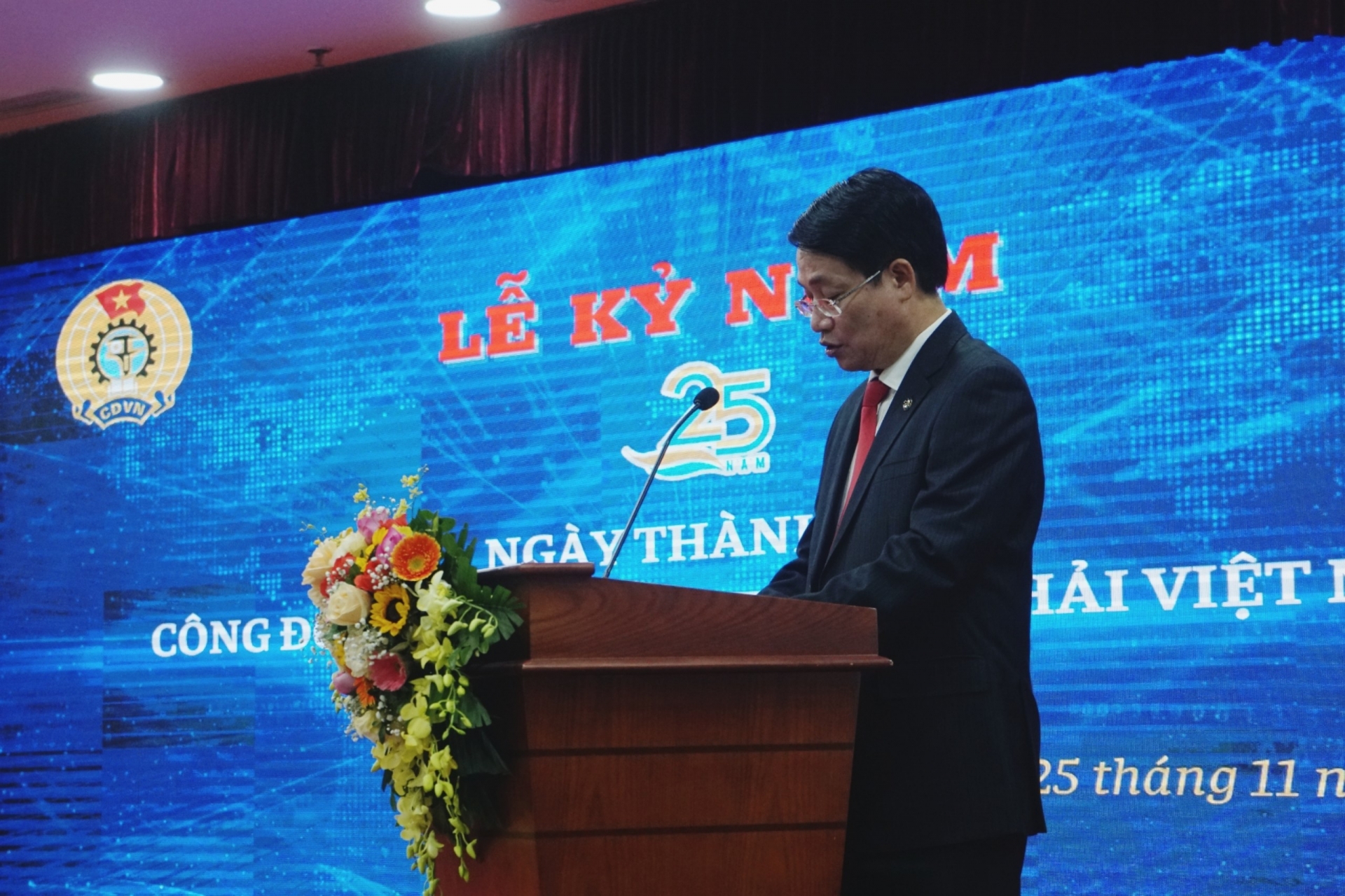 | Ông Lê Phan Linh - Chủ tịch Công đoàn TCT HHVN phát biểu tại lễ kỷ niệm 25 năm Công đoàn TCT HHVN thành lập. Ảnh: Sỹ Công |