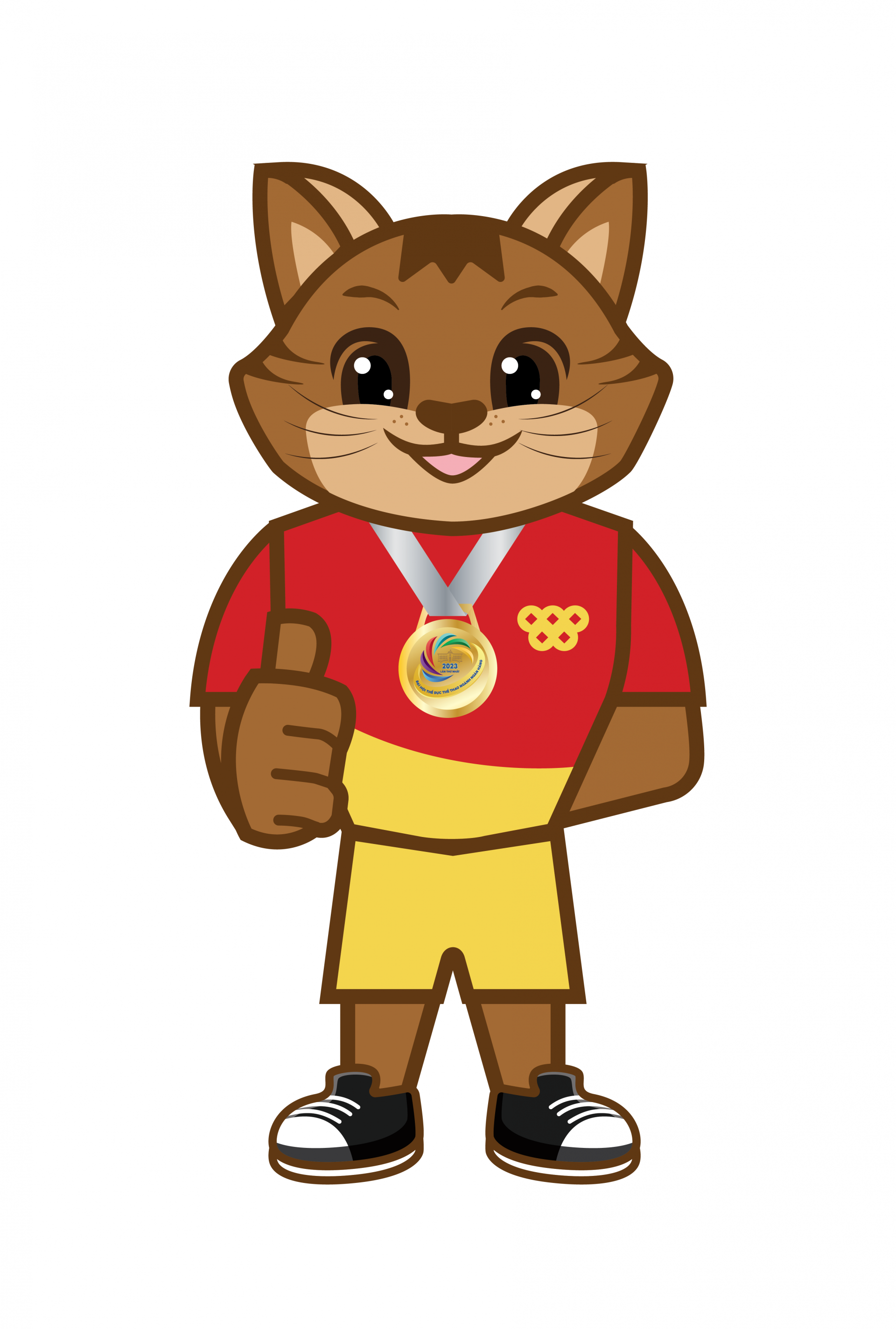 Đại hội sử dụng biểu tượng chú Mèo Cago - Năng động và kiên trì. Mèo được biết đến là loài vật nhanh nhẹn, thông minh, năng động và có tính kiên trì. Là tinh thần mà Đại hội TDTT hướng tới. Chú Mèo mặc trang phục thể thao đỏ, vàng. Màu đỏ thể hiện sự nồng cháy, nhiệt huyết, chiến thắng. Màu vàng thể hiện sự sáng tạo, thịnh vượng. |