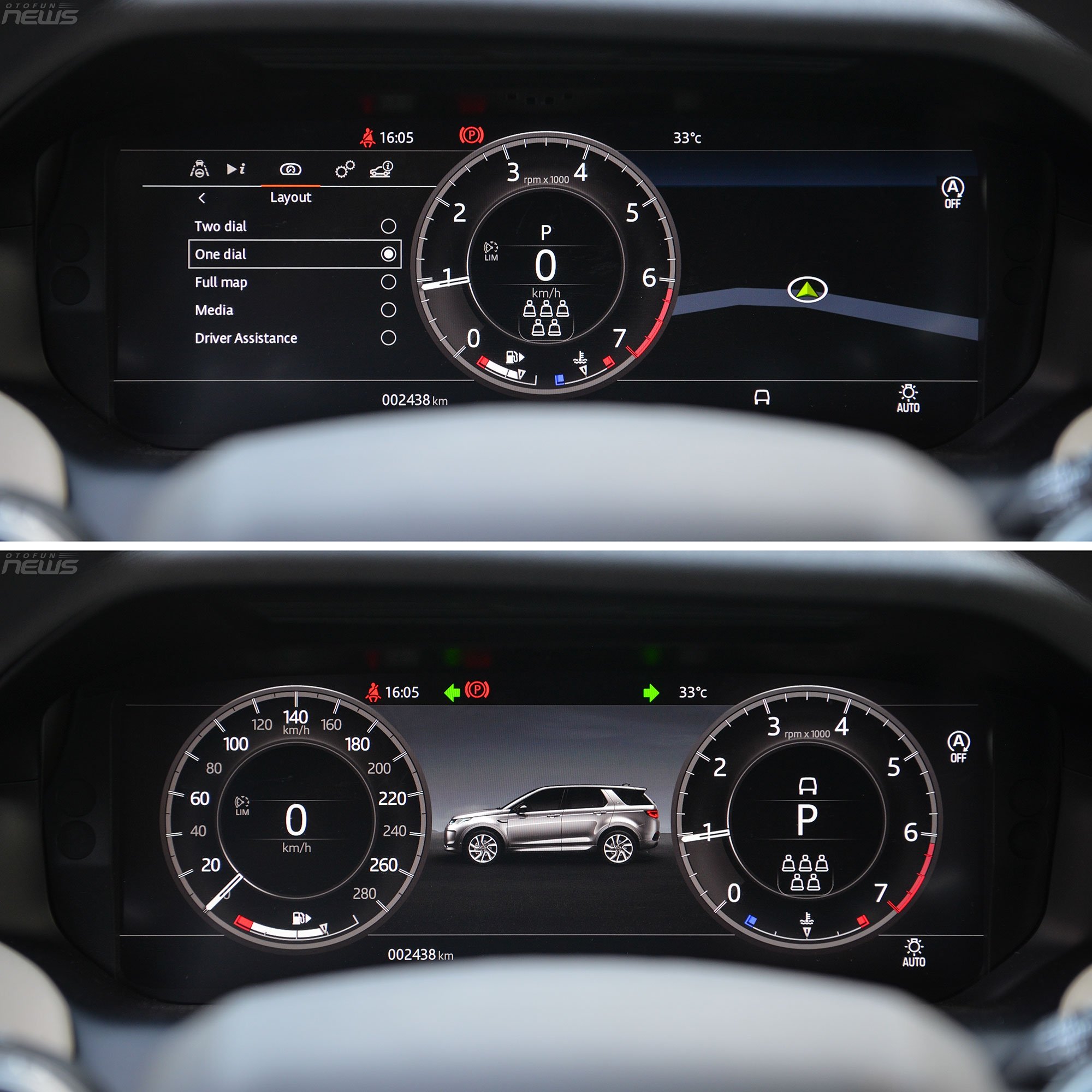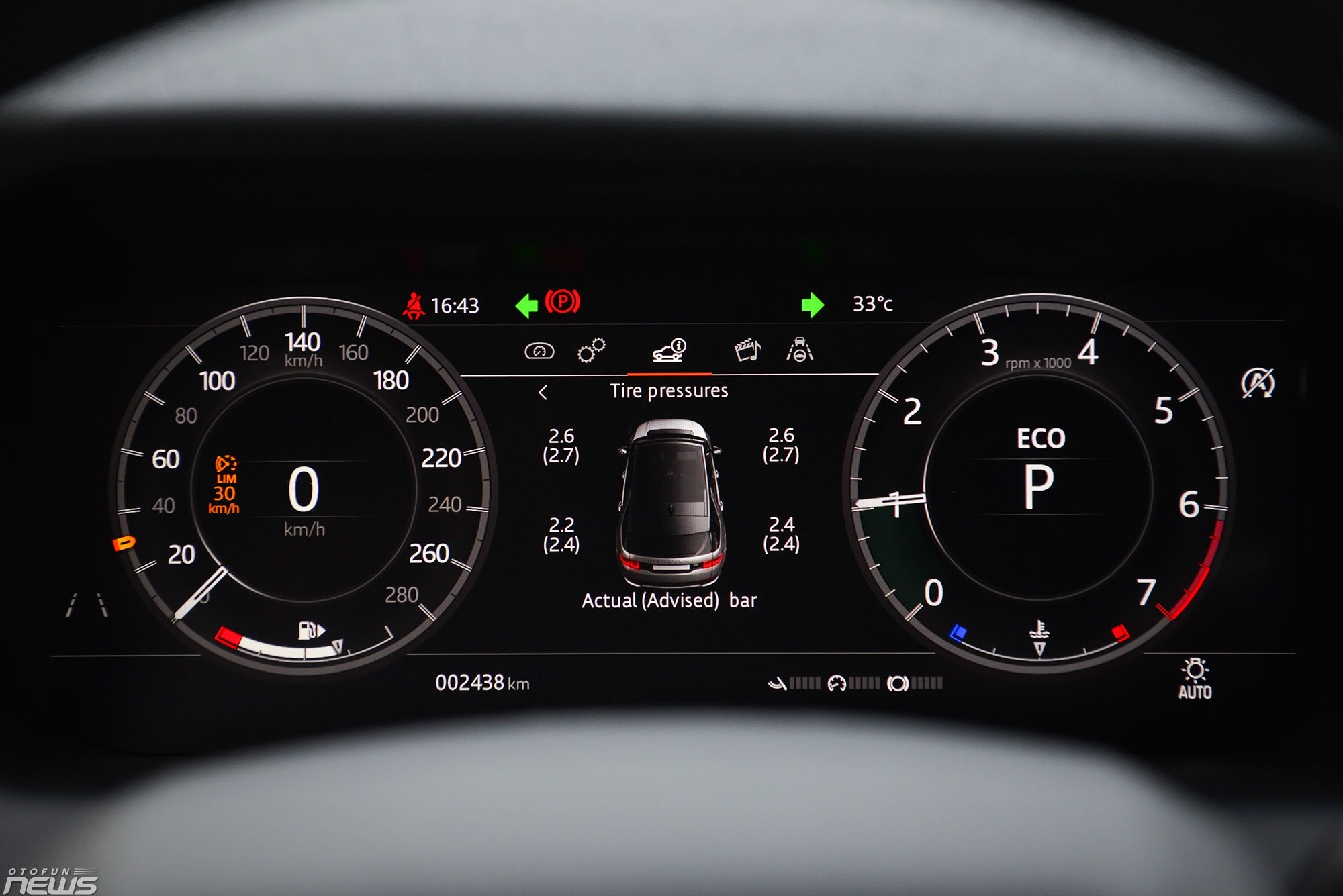 Vô lăng bốn chấu, bên trong dạng vuông như những mẫu Range Rover đàn anh. Hệ thống phím điều khiển chìm, các ký hiệu dạng đèn LED. Màn hình hiển thị sau vô lăng dạng kỹ thuật số 12,3 inch, hiển thị đa thông tin thay vì dạng analog như trước. Người lái có thể dễ dàng chọn tới 5 chế độ hiển thị, ưu tiên theo ý thích.