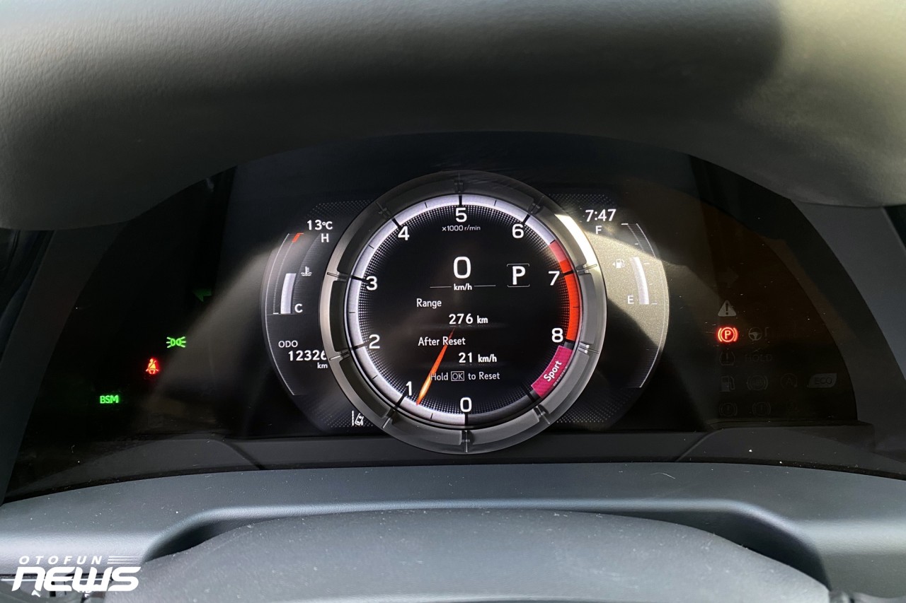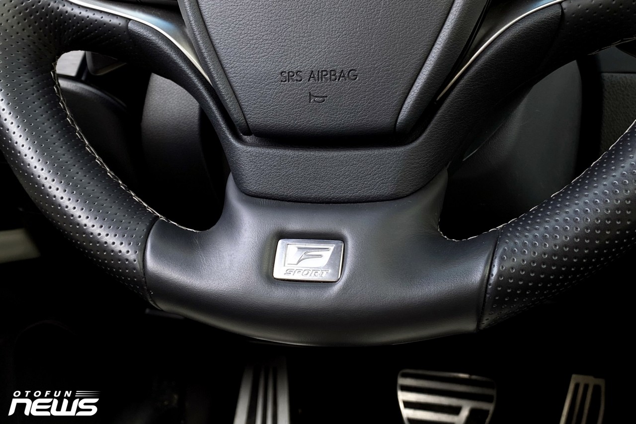 Vô-lăng ba chấu thể thao với logo F-Sport ở gần vị trí 6h tích hợp các phím bấm chức năng và lẫy chuyển số. Phía sau vô-lăng là đồng hồ dạng analog kết hợp màn hình điện tử dễ dàng quan sát.