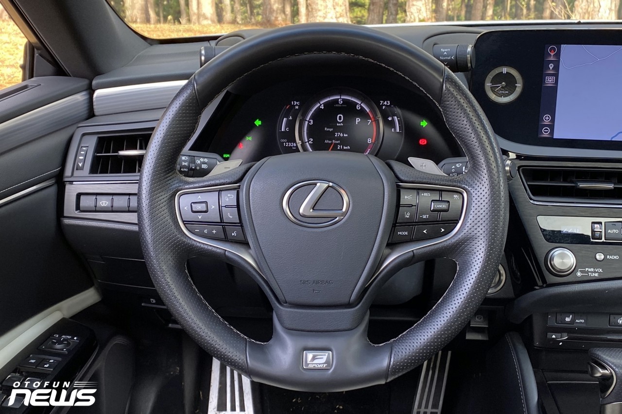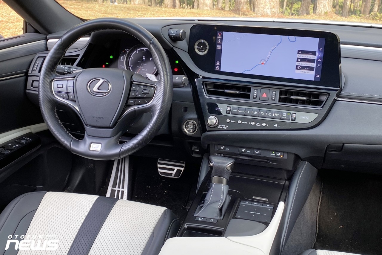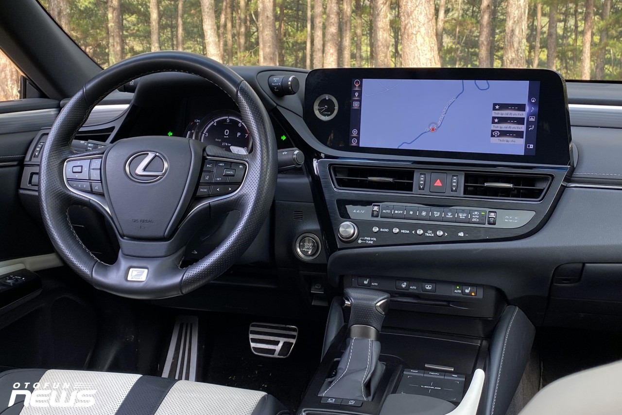 Vào bên trong, nội thất ES250 F-Sport tạo cảm giác cao cấp, sang trọng như một chiếc Lexus vốn có. Không chạy theo trào lưu màn hình to, cảm ứng nhiều và loại bỏ các phím bấm vật lý, chiếc xe này vẫn giữ lại những gì truyền thống của hãng xe sang Nhật Bản.