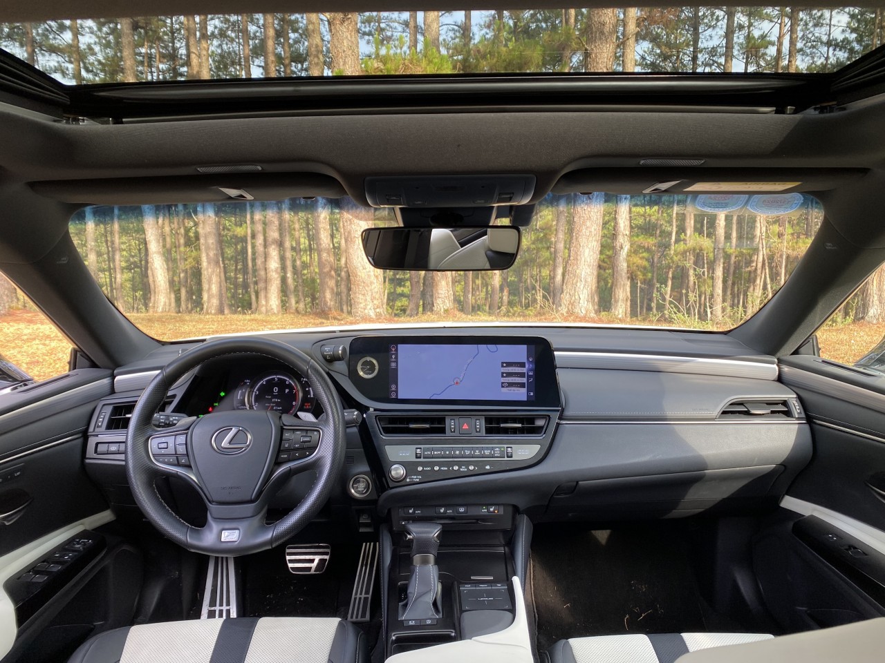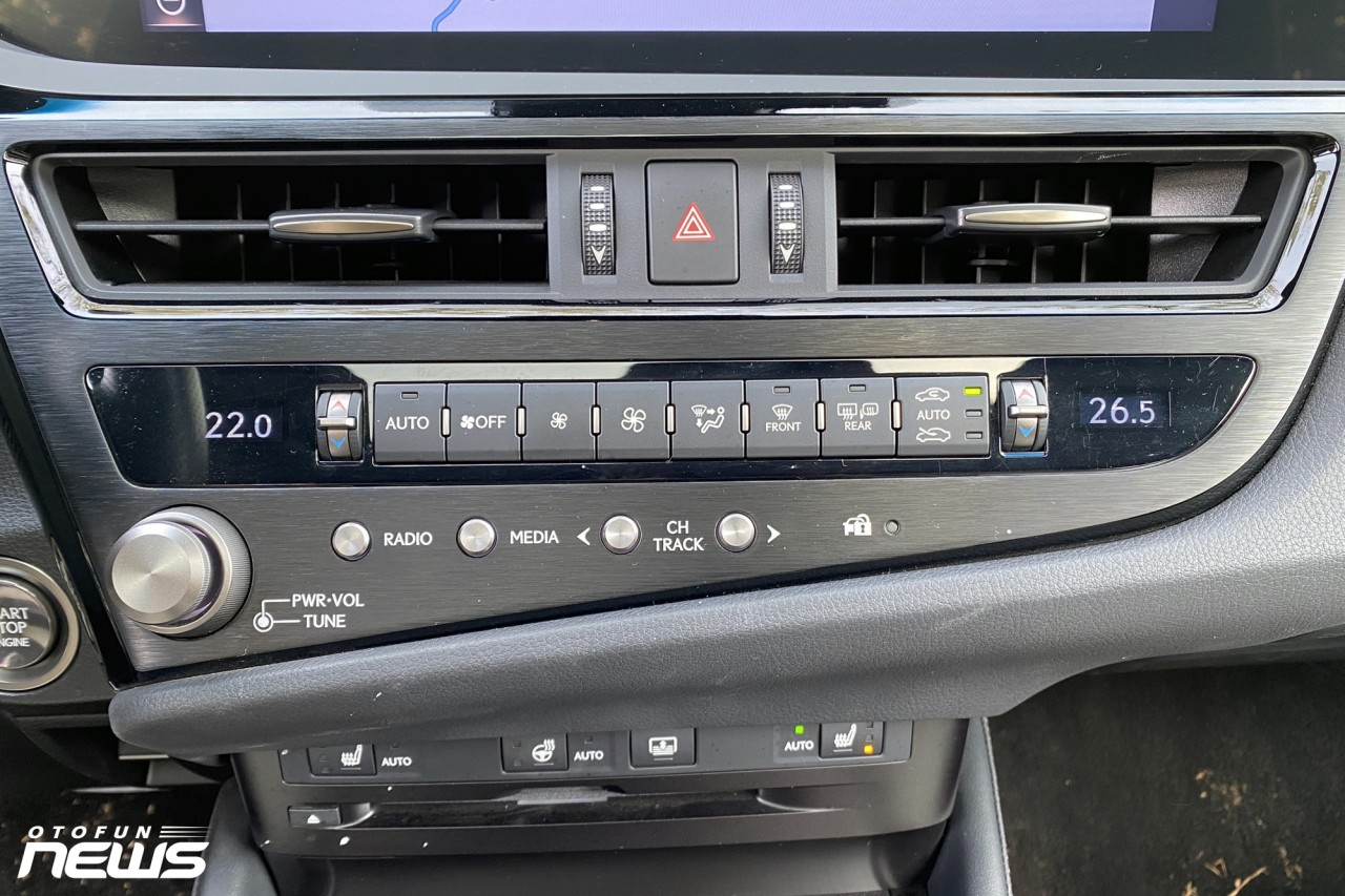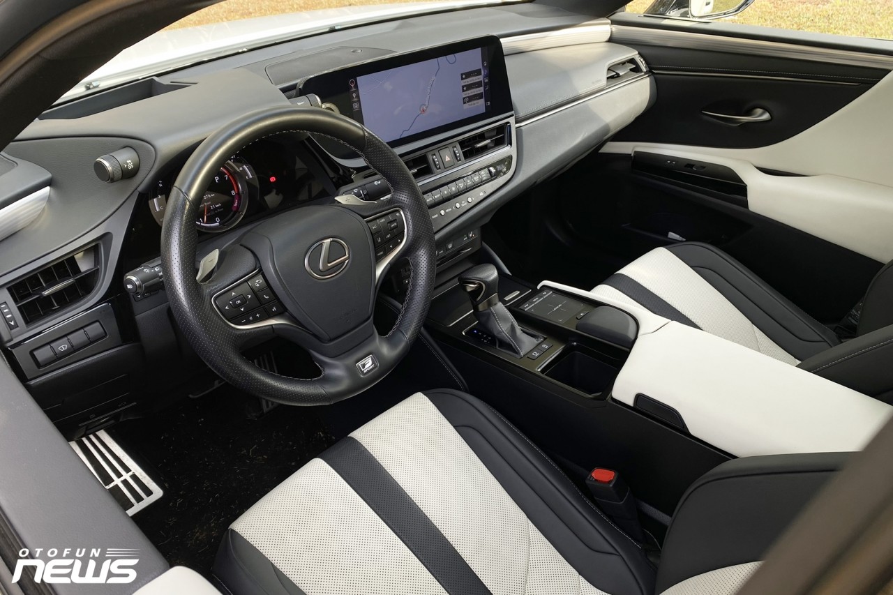 Vào bên trong, nội thất ES250 F-Sport tạo cảm giác cao cấp, sang trọng như một chiếc Lexus vốn có. Không chạy theo trào lưu màn hình to, cảm ứng nhiều và loại bỏ các phím bấm vật lý, chiếc xe này vẫn giữ lại những gì truyền thống của hãng xe sang Nhật Bản.
