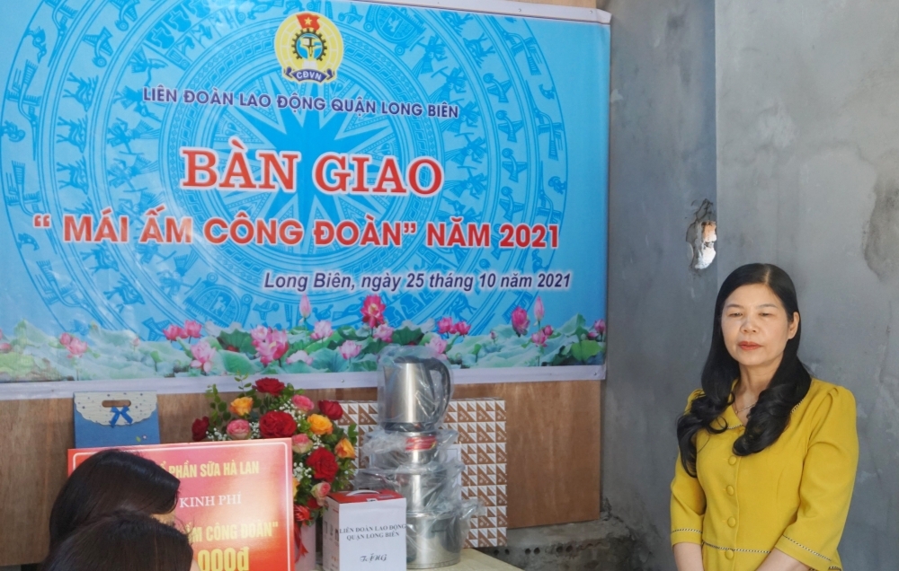 Đặc biệt, thực hiện chỉ đạo của LĐLĐ Thành phố về việc hỗ trợ xây, sửa Mái ấm Công đoàn cho đoàn viên, người lao động có hoàn cảnh khó khăn, ngoài nguồn kinh phí từ Quỹ Xã hội Công đoàn, LĐLĐ quận Long Biên đã tích cực vận động kinh phí xã hội hóa, kêu gọi sự chung tay, góp sức của các doanh nghiệp, đơn vị trên địa bàn để có thêm nguồn hỗ trợ cho đoàn viên, như Công ty cổ phần Sữa Hà Lan.