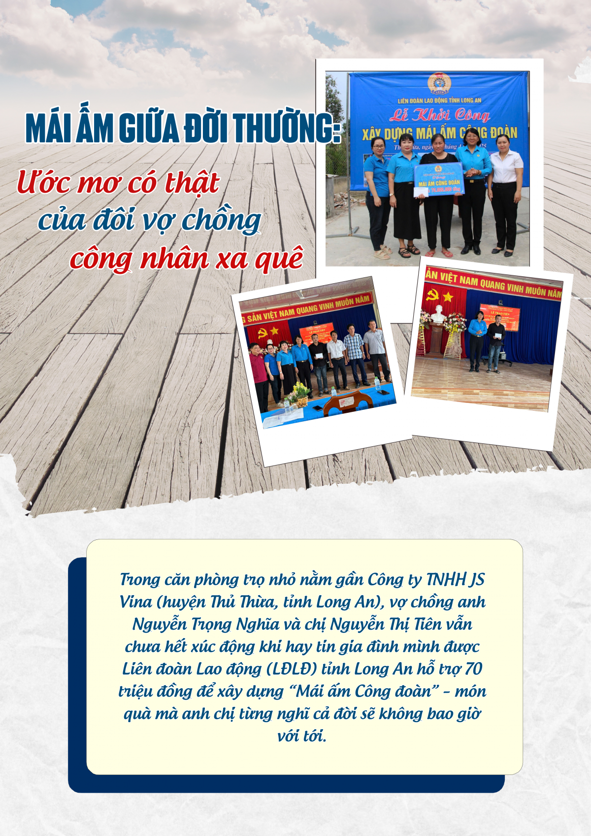 Đồng chí Lê Thị Thu Cúc – Phó Chủ tịch Thường trực LĐLĐ tỉnh Long An – khẳng định: “Chương trình ‘Mái ấm Công đoàn’ là một trong những hoạt động trọng tâm, thể hiện sâu sắc việc học tập và làm theo tư tưởng, đạo đức, phong cách Hồ Chí Minh, đặc biệt là quan điểm phát triển kinh tế gắn với tiến bộ và công bằng xã hội. Năm 2025, LĐLĐ tỉnh sẽ vận động xây dựng 50 căn nhà ‘Mái ấm Công đoàn’, cùng với 10 căn khác từ nguồn xã hội hóa.” “Chúng tôi xác định, công tác chăm lo cho người lao động – đặc biệt là những hoàn cảnh yếu thế – cần được triển khai một cách đồng bộ, xuyên suốt từ tỉnh đến cơ sở. Sự hỗ trợ phải đến đúng người, đúng lúc, với tinh thần minh bạch, công khai và đầy trách nhiệm. Đây không chỉ là nhiệm vụ, mà còn là tâm huyết và cam kết mà tổ chức Công đoàn tỉnh Long An luôn kiên định theo đuổi”, Phó Chủ tịch Thường trực LĐLĐ tỉnh Long An nhấn mạnh. Tính đến nay, LĐLĐ tỉnh Long An đã trao tặng 35 căn nhà, cùng 1 căn từ nguồn xổ số kiến thiết tỉnh. Những mái ấm này không chỉ giúp người lao động ổn định nơi ở, mà còn củng cố niềm tin, sự gắn kết giữa đoàn viên và tổ chức công đoàn. Đồng chí Nguyễn Văn Hiếu – Chủ tịch Ủy ban Mặt trận Tổ quốc Việt Nam xã Phú Hữu (An Giang), nơi anh Nghĩa mua đất – bày tỏ sự cảm kích: “Đây là hỗ trợ thiết thực, góp phần cùng địa phương xóa nhà tạm, nhà dột nát. Chính quyền sẽ phối hợp giám sát, đảm bảo khoản hỗ trợ được sử dụng đúng mục đích.” Với những lao động nghèo như vợ chồng anh Nghĩa – chị Tiên, “Mái ấm Công đoàn” không chỉ đơn thuần là một chương trình hỗ trợ nhà ở. Đó còn là một giấc mơ – là tổ ấm chắt chiu giữa bộn bề cuộc sống, là biểu tượng của niềm tin vào một ngày mai tươi sáng hơn. Nơi đó, họ không chỉ có một mái nhà để trở về, mà còn cảm nhận được sự đồng hành thầm lặng nhưng bền bỉ từ tổ chức công đoàn – người bạn lớn luôn ở bên họ trong suốt hành trình mưu sinh. |