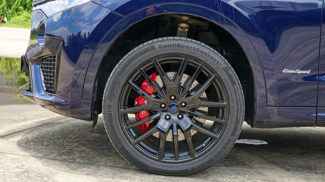 Levante GranSport trang bị bộ mâm 21 inch màu đen bóng với kích thước lốp trước/sau lần lượt là 265/40 và 295/35. Tùy từng phiên bản mà Maserati trang bị cho Levante kiểu dáng và kích thước mâm khác nhau, khách hàng có thể nâng cấp kích thước mâm lên mức tối đa là 22 inch.