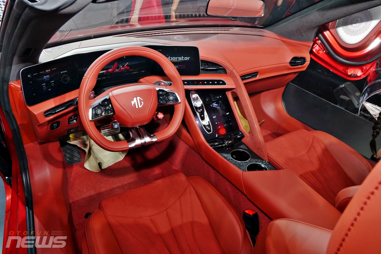 Bên trong MG Cyberster là không gian nội thất chỉ có hai chỗ ngồi với ghế thể thao hình chữ "Y". Các chi tiết được bọc da, vô lăng vát đáy thể thao, tích hợp lẫy để chỉnh hệ thống phục hồi động năng, và bảng đồng hồ kỹ thuật số với thiết kế cong, kết hợp giữa ba màn hình trên mặt táp-lô.