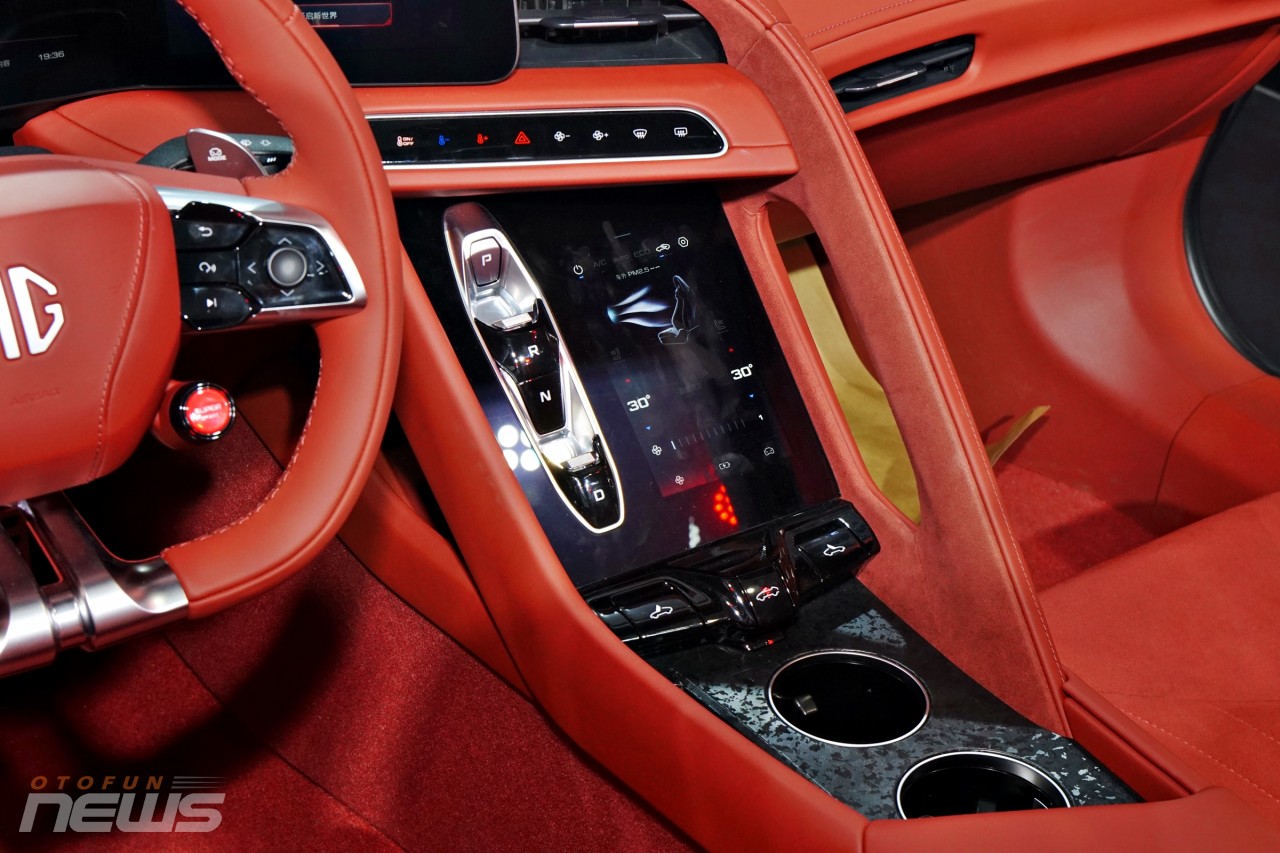Thêm vào đó là màn hình nằm dọc và các nút bấm chuyển số ở cụm điều khiển trung tâm. Hệ thống thông tin giải trí của xe dùng chip Qualcomm Snapdragon 8155 và đồ họa Unreal Engine 4.0. Hệ thống này kết hợp với hệ thống âm thanh Bose.