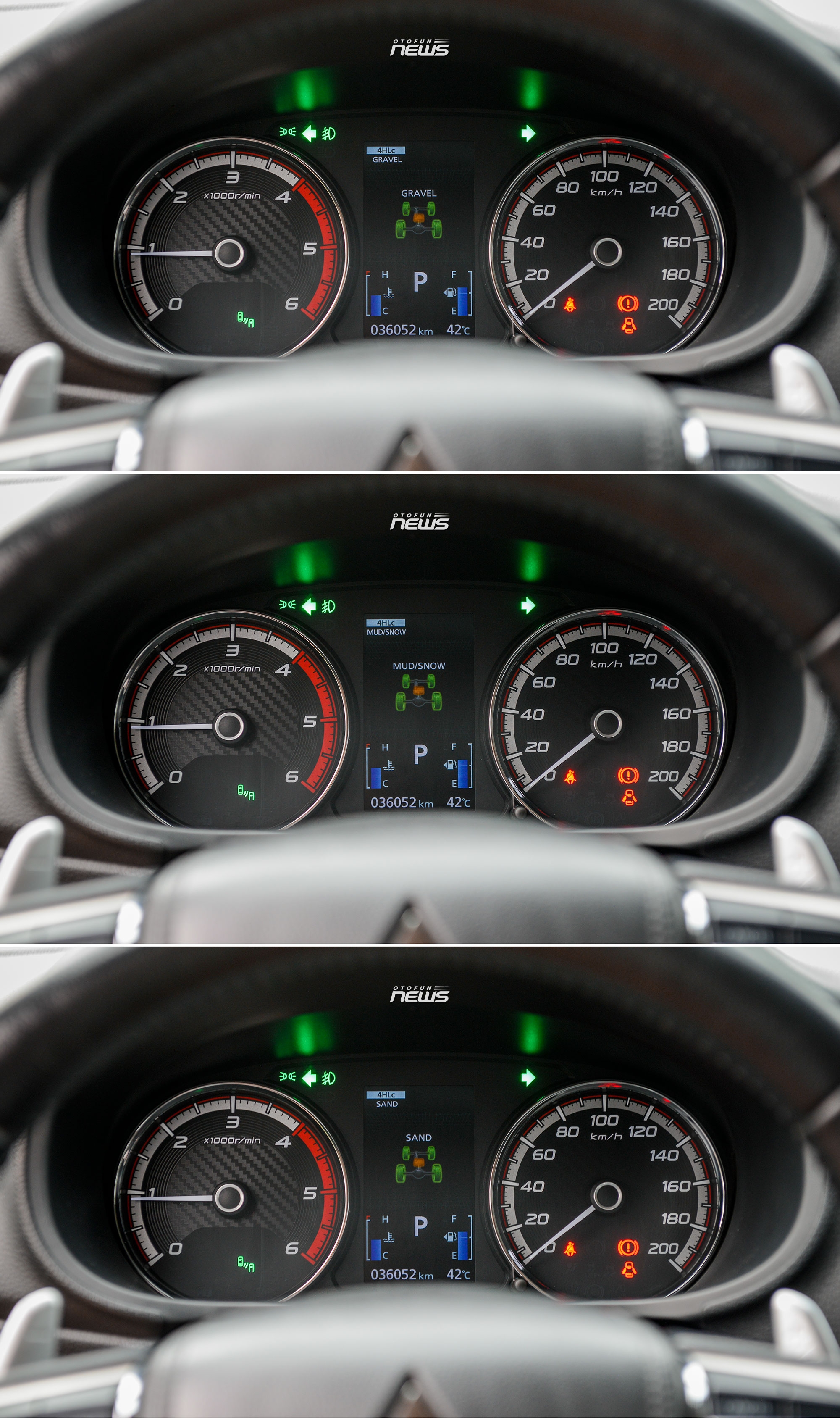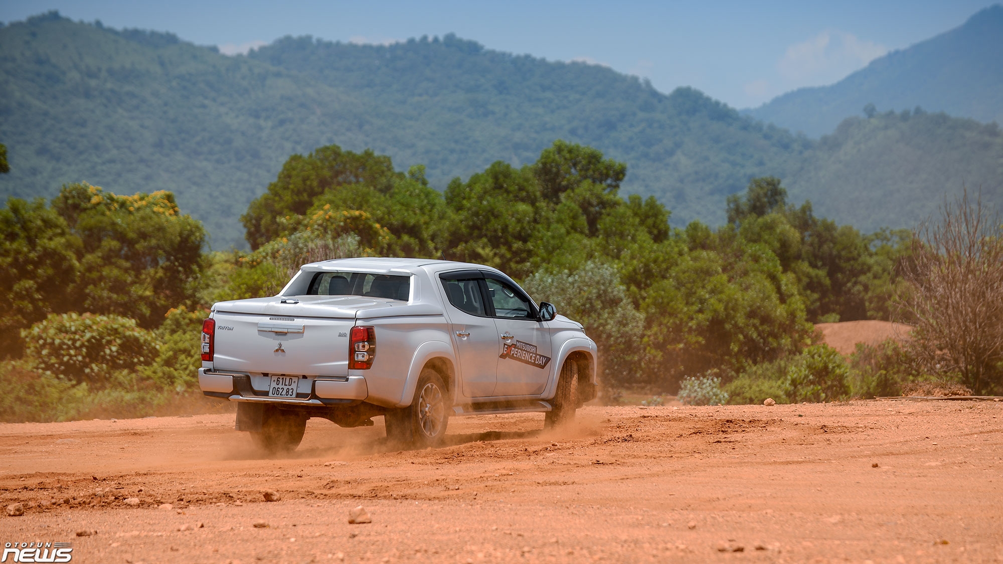 Khi đến một đoạn đường đất khó khăn hơn, tôi chuyển về 4HLc, lựa chọn chế độ chạy địa hình sỏi đá (Gravel). Chiếc Triton giờ đây như được “thả hồ về rừng”, từng chướng ngại đều trở nên dễ dàng. Một tính năng đáng chú ý nữa là hỗ trợ đổ đèo. Gặp dốc cao có độ nghiêng lớn, kích hoạt tính năng này, tôi hoàn toàn không cần phải dùng đến phanh để hãm tốc. Hệ thống điện tử sẽ tính toán, cung cấp một lực vừa đủ để xe đi xuống dốc với tốc độ phù hợp, đảm bảo an toàn.