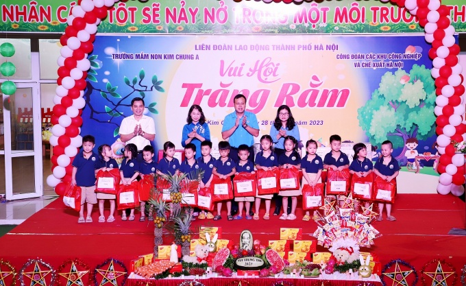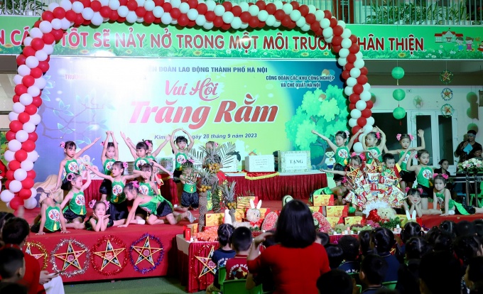 Trong Chương trình "Vui hội trăng rằm" diễn ra vào ngày 28/9 do LĐLĐ TP Hà Nội phối hợp với Công đoàn các Khu Công nghiệp và chế xuất Hà Nội, Trường Mầm non Kim Chung A tổ chức đã mang đến những niềm vui, khích lệ tinh thần cho gia đình công nhân lao động (CNLĐ) vào dịp năm học mới.