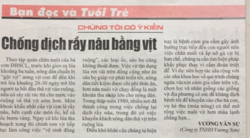 Khi dịch bệnh “tai xanh” ở lợn bùng phát năm 2015, anh có bài viết “Chỉ cần loại bỏ lợn đã chết” đăng trên Báo Nông thôn ngày nay với cái nhìn “mới lạ” và “khác biệt với quy định về Luật Thú y hiện hành”. Sau khi tận mắt nhìn những khuôn mặt đau khổ, những dòng nước mắt xót xa, tiếc nuối và thúc thủ của người nuôi lợn, bằng một số kiến giải có căn cứ khoa học, anh đặt vấn đề nếu chặn đứng sự lây lan của dịch bằng cách giết tất cả lợn nhiễm trong vùng thì có nên không; việc giết lợn bằng biện pháp chôn sống có cần thiết không… Sau khi bài đăng, một biên tập viên của báo đã thực hiện một bài phỏng vấn anh. Tiếp theo, báo mời anh ra Hà Nội làm một cuộc “đối chất” với cơ quan có thẩm quyền của ngành Nông nghiệp. Anh chuẩn bị lên đường thì có thông báo của Cục Thú y ngưng chôn sống lợn chờ… nghiên cứu thêm!