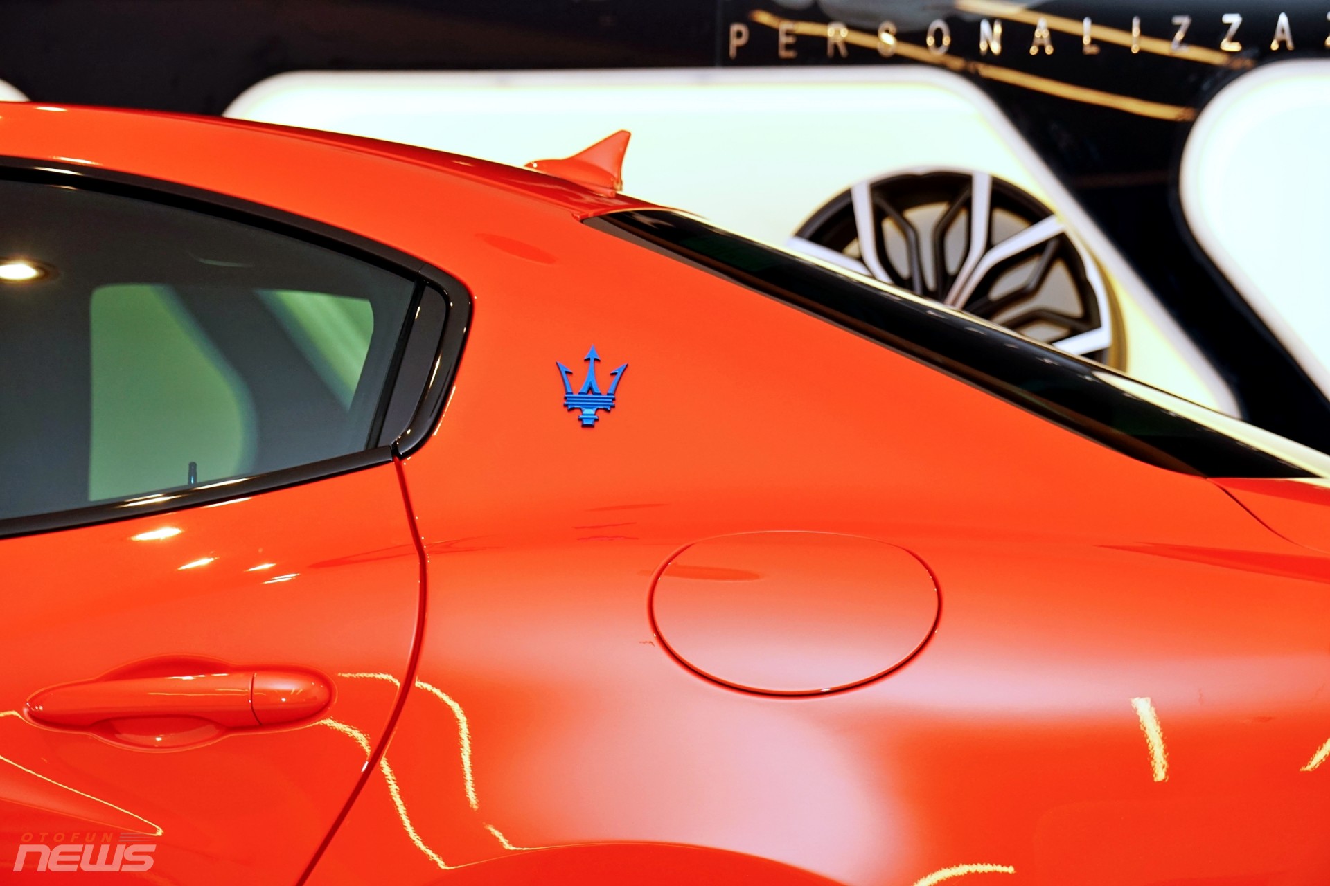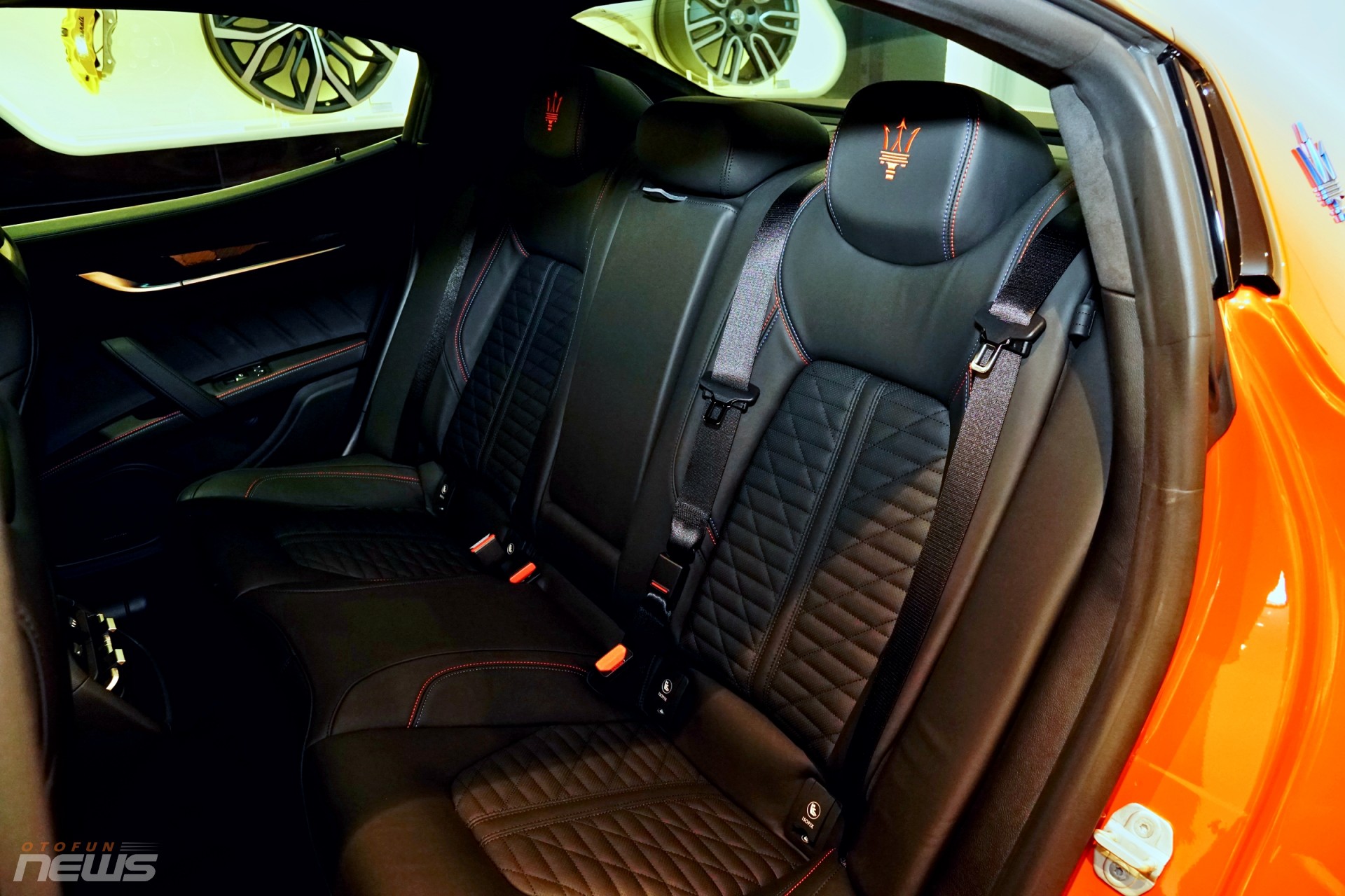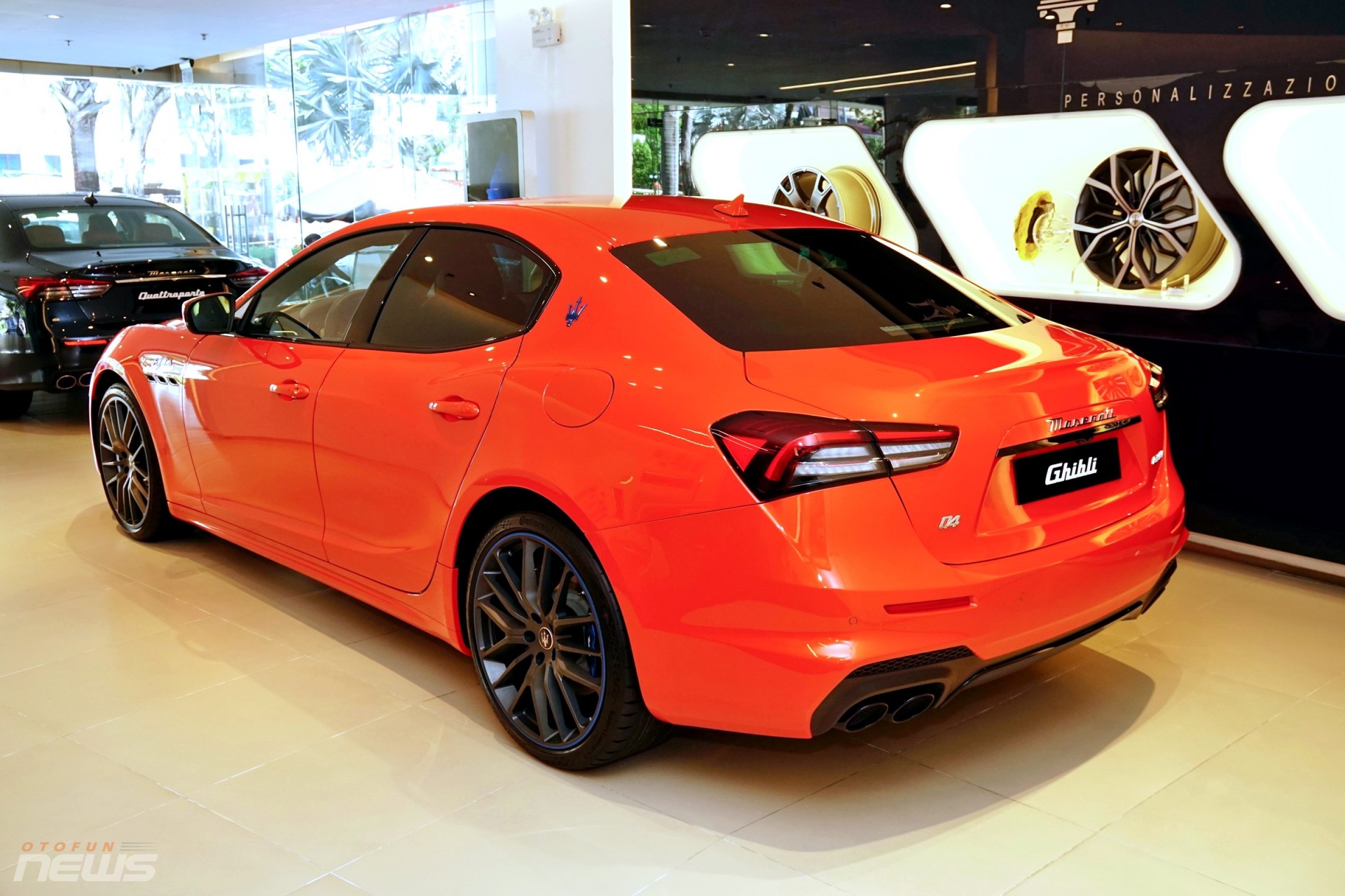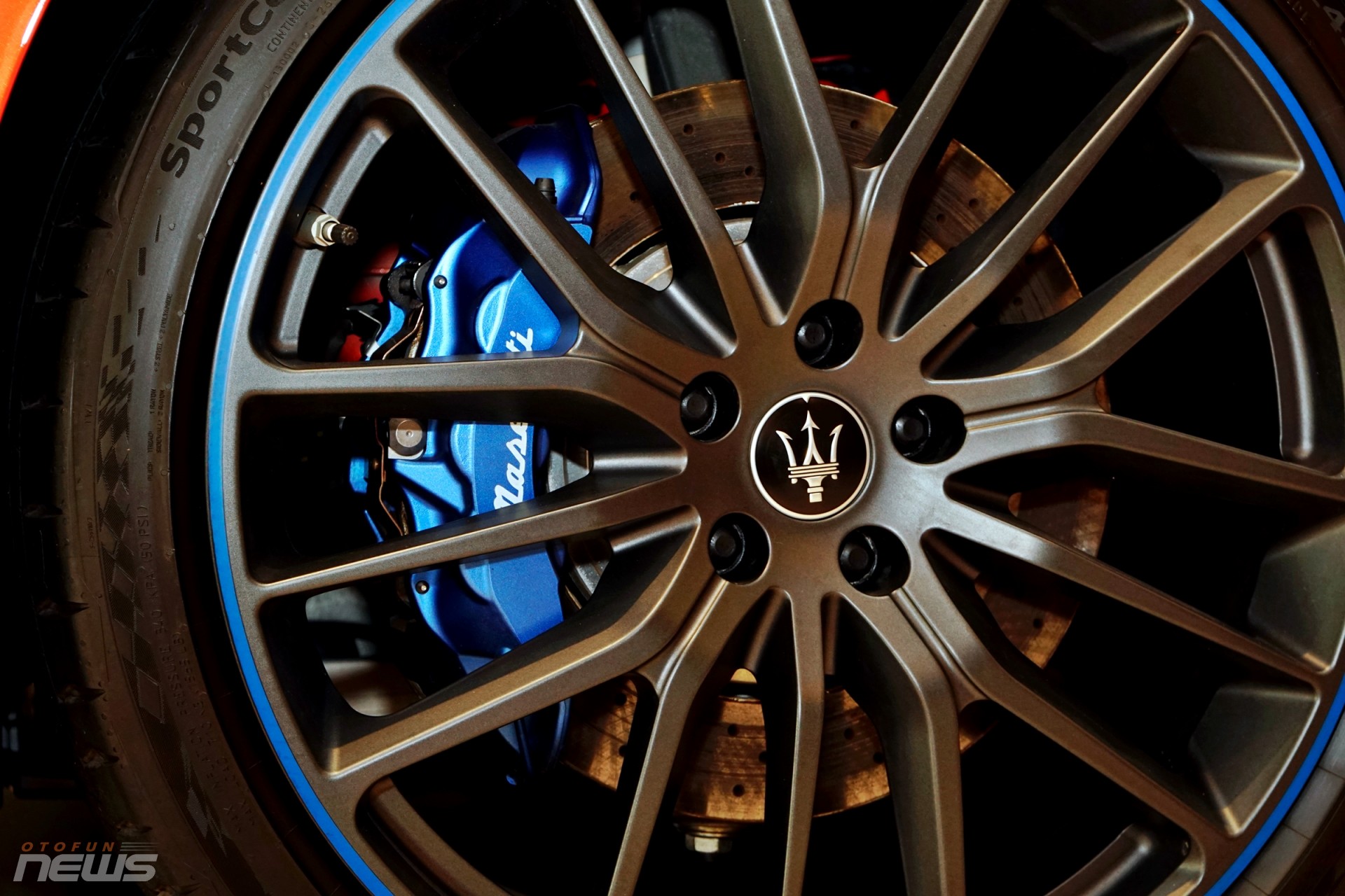 Ngoài bộ cánh màu cam độc đáo, chiếc Ghibli F Tributo Special Edition trong bài viết này còn "diện" bộ mâm Titano 21 inch đen bóng với kẹp phanh thể thao xanh mờ.