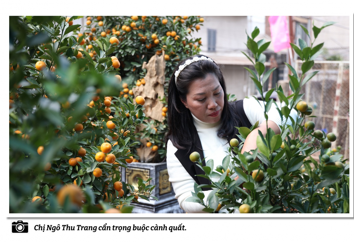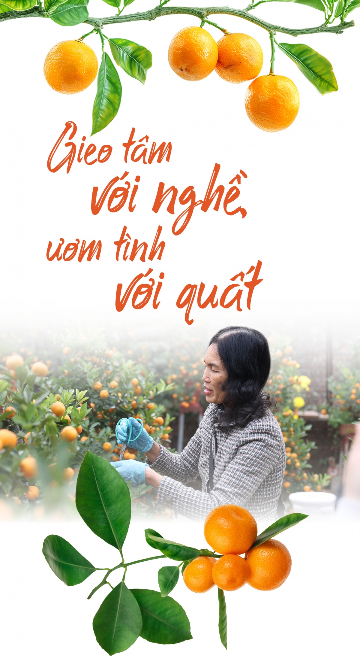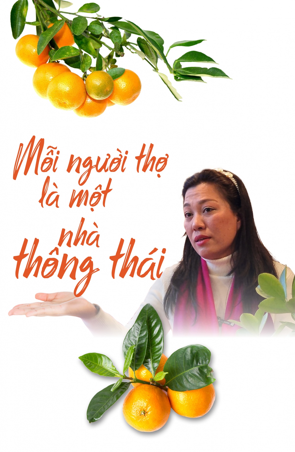 "Muốn có cây đẹp, mỗi dáng cây tôi phải mất 3 đến 5 năm. Chăm cây như chăm con mọn, phải uốn nắn, tỷ mỹ vào từng chút. Mỗi năm phải sửa 2-3 lần, có khi cắt cả những cành lớn để làm lại. Đất trồng phải tơi xốp, giàu dinh dưỡng. Chỉ khi tự tay chăm sóc, mới hiểu hết giá trị của từng chậu cây," bà chia sẻ. Muốn có dáng quất đẹp, phải tư duy từ lúc bắt đầu. Chọn dáng long phượng, người thợ phải kiên nhẫn, hai mươi, ba mươi cây mới chọn ra được một. Cành trên, cành dưới phải uốn làm sao như rồng bay, không thể vài năm là xong. Chồng bà Thư, ông Nguyễn Thế Mạnh, cũng là một nghệ nhân quất nổi tiếng. Hai vợ chồng vẫn nhắc về con số 10 năm – quãng thời gian "tạm gọi là thành công", mua được những vật dụng có giá trị đầu tiên trong nhà. Ba mươi năm, tiếng lành vượt khỏi làng nghề, vườn quất nhà bà Thư đã trở thành một địa chỉ uy tín. Những khách quen lại tìm đến mỗi khi xuân về. Cây quất bà trồng không chỉ đẹp về dáng, thế, mà còn trĩu quả, vàng tươi, mang đậm hương vị truyền thống của ngày Tết.