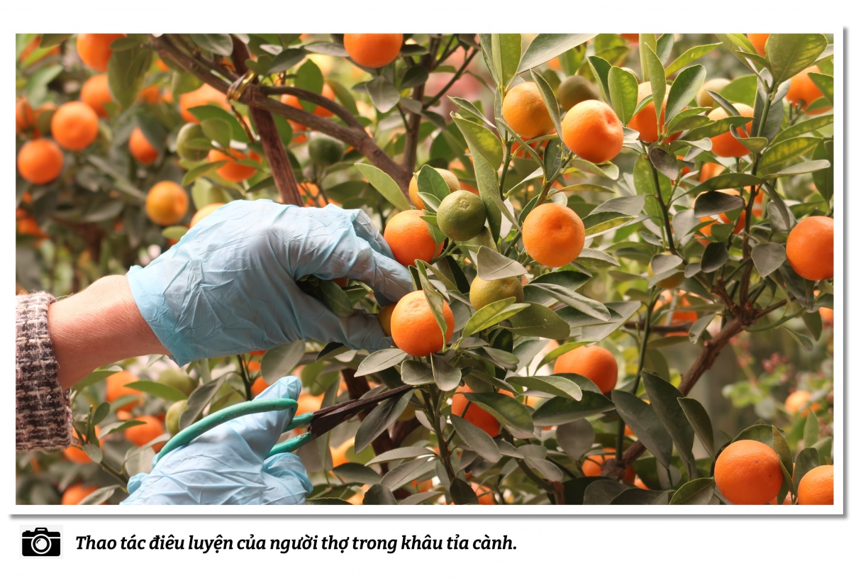Trồng quất trong bình càng khó gấp bội. Chăm bón ra sao, lượng dinh dưỡng thế nào cho vừa, là những thách thức vợ chồng chị Trang đã trải qua. Sau 3 năm, sản phẩm đầu tay ra đời, tạo nên xu hướng mới. Làng nghề từ đó còn có thêm công việc sản xuất bình, chậu cảnh. Đối với mỗi bình, chậu, người nghệ nhân phải tính toán sao cho hợp với dáng cây. Những chậu to thì dễ, nhưng những bình "thắt cổ chai" lại là cả một nghệ thuật. Ngay cả việc đưa cây vào chậu cũng đòi hỏi kiên nhẫn, tỷ mỹ từng chút. Sau khi bén rễ, cây bắt đầu phát triển thì nghệ nhân lại phải tính toán tạo dáng.