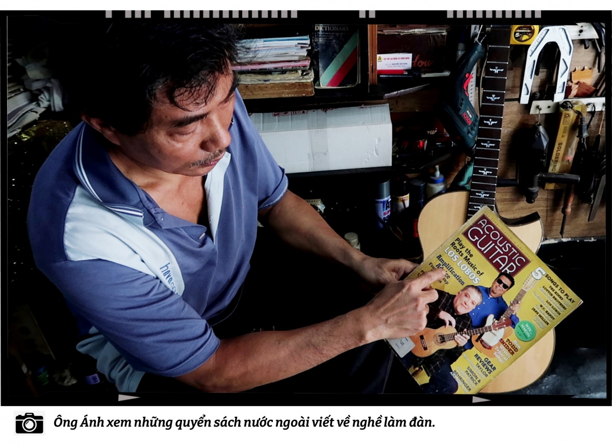 Quy trình là vậy, người thợ nào cũng theo đó mà làm, nhưng chất lượng sau khi hoàn thành thì không ai giống ai. Ông nói: Mình là người theo chủ nghĩa “giải mã ngược”. Khi học được một điều gì đó, ông luôn tìm cách hỏi ngược lại, để tìm lời giải: nó từ đâu mà ra, vì sao phải như thế? Chẳng hạn như chiếc xe đạp chạy được dựa vào nguyên lý truyền động. Vậy nguyên lý đàn guitar sẽ hoạt động như thế nào để cho ra âm thanh với những tiếng ngân, tiếng vang phong phú, dù chỉ có 6 sợi dây đàn?. “Ở Việt Nam có vô số thợ làm đàn, nhưng lại không có quyển sách nào chỉ dẫn, hay dạy về nghề này, đó là điều đáng tiếc nhất. Tôi may mắn khi những năm đầu vào Sài Gòn gặp được những người bạn nước ngoài. Họ không chỉ biết chơi đàn, mà còn biết làm đàn với kiến thức vô cùng rộng lớn. Qua những lần gặp gỡ, trò chuyện, rồi những buổi “trà dư tửu hậu”, anh em bạn bè quý và hiểu nhau. Từ đó, họ gửi tặng tôi rất nhiều sách. |