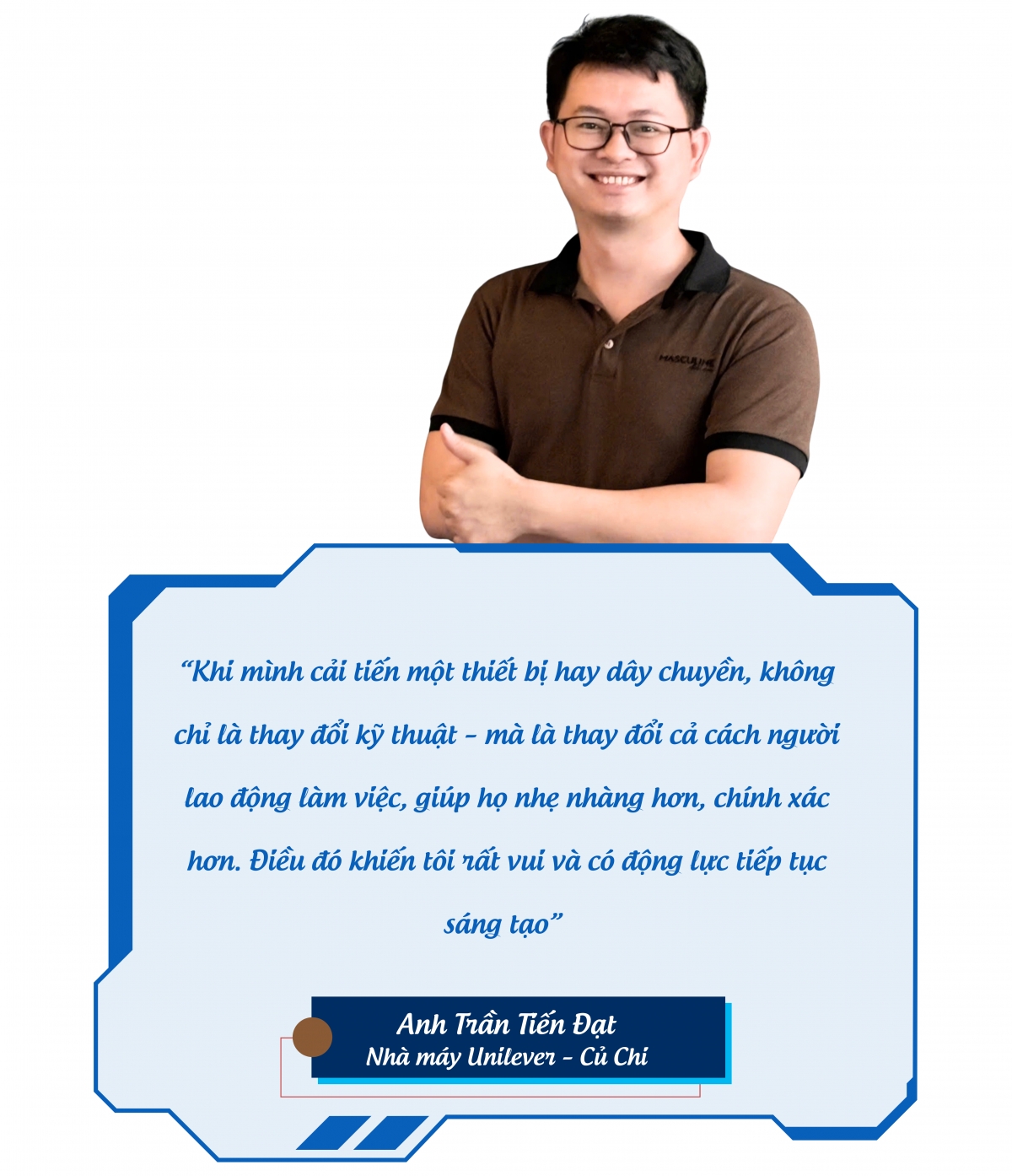 Anh không chỉ là người hiểu sâu sắc từng chi tiết kỹ thuật của dây chuyền, mà còn là “người gieo mầm sáng tạo” với những sáng kiến đột phá, giúp nhà máy tăng tốc trên hành trình tự động hóa – chuyển đổi số, đồng thời mang lại giá trị thiết thực cho người lao động và doanh nghiệp…