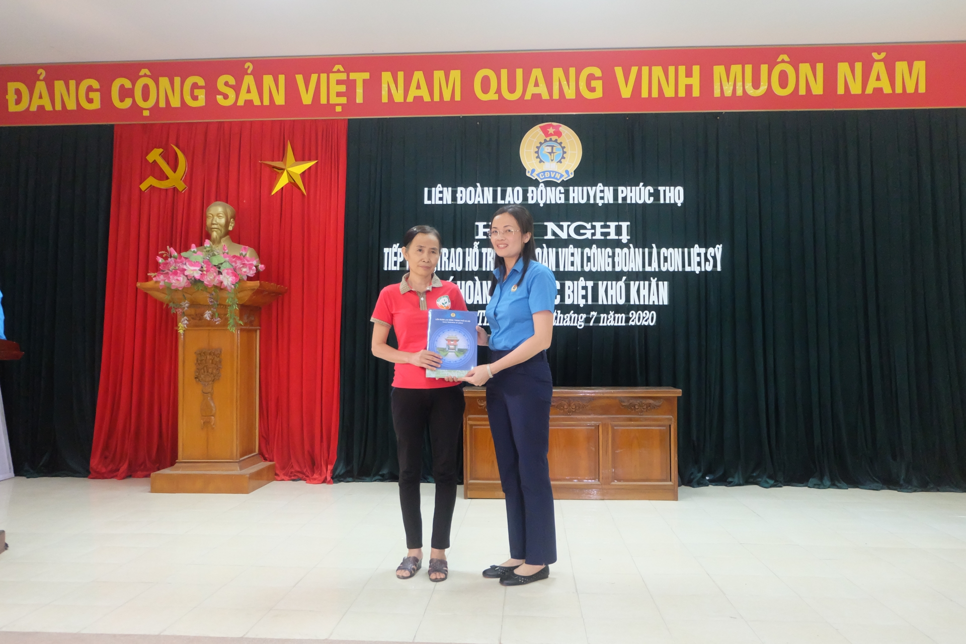 | LĐLĐ huyện Phúc Thọ tổ chức Hội nghị tiếp nhận hỗ trợ kinh phí xây dựng “Mái ấm Công đoàn” cho đoàn viên Nguyễn Thị Thư. |