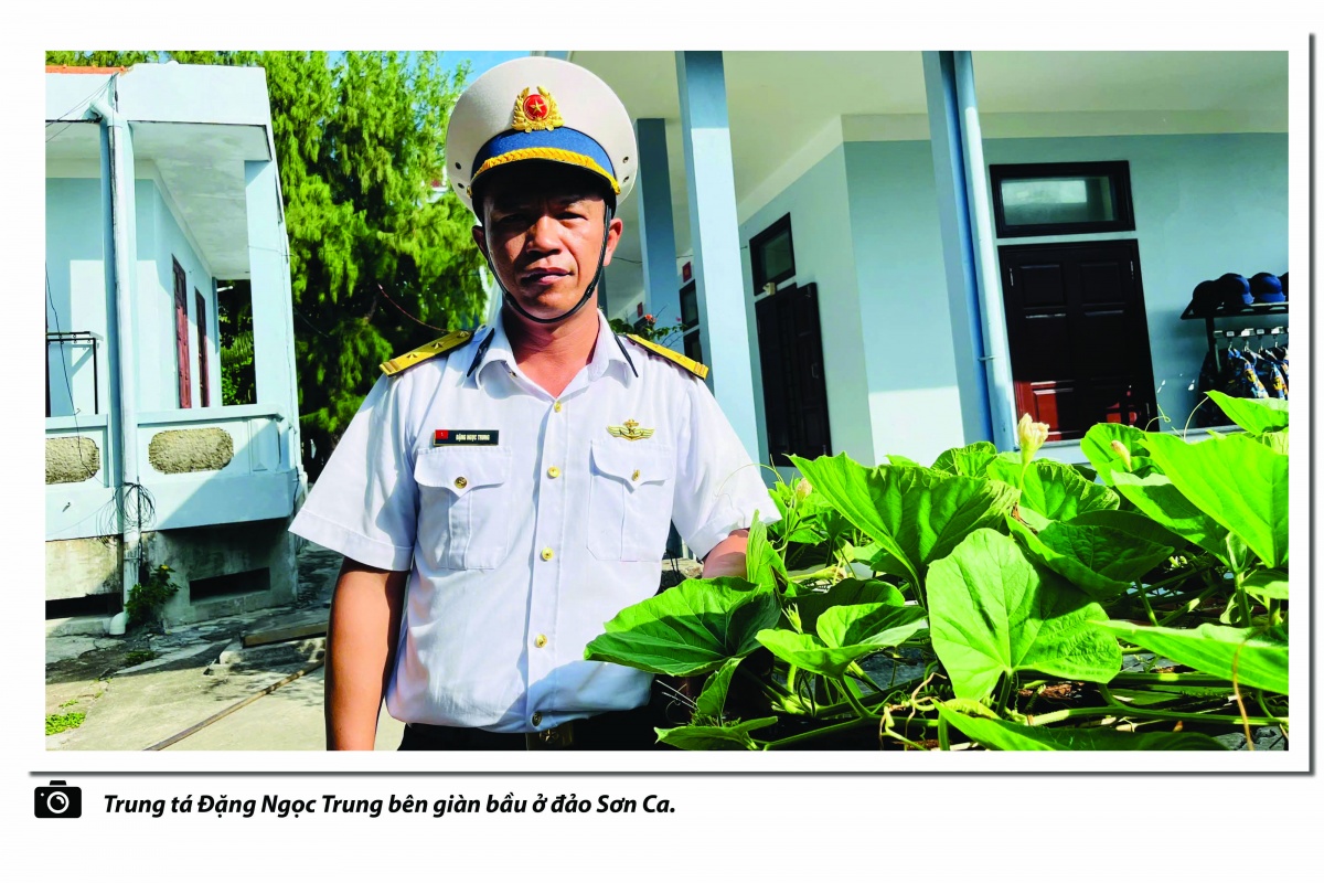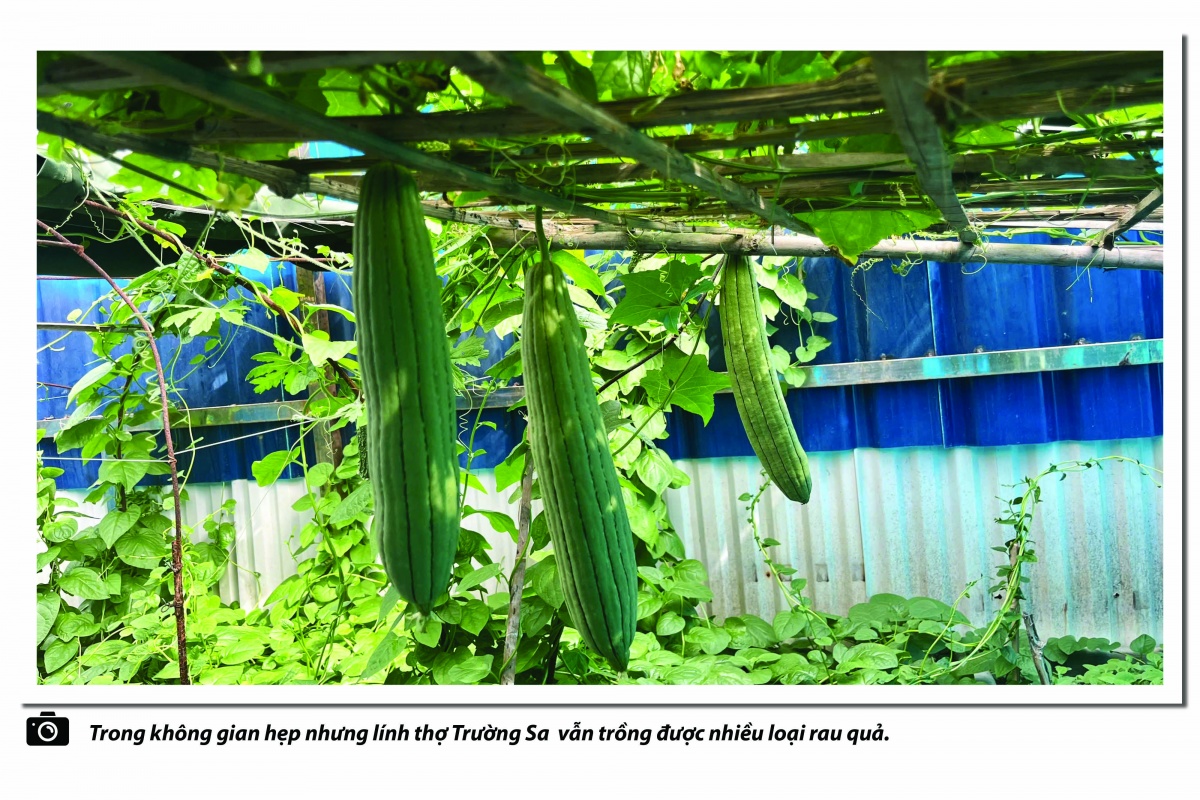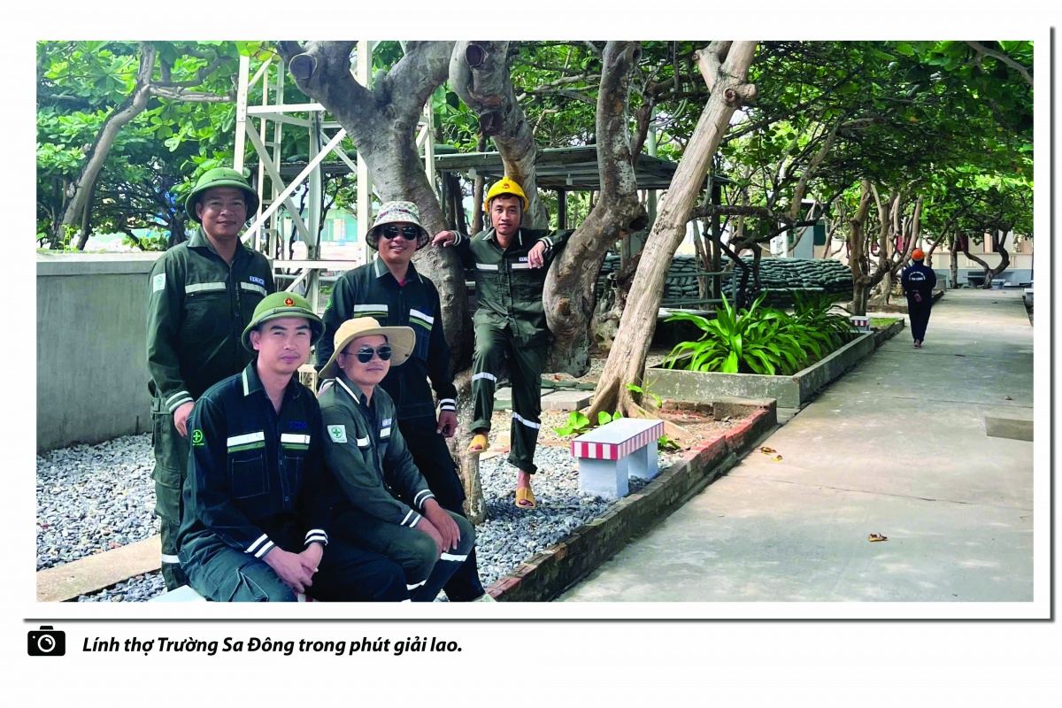 Bên mỗi khu nhà ở của những người “lính thợ” hay “thợ lính” mà tôi bắt gặp trên các đảo đều là những vườn rau tận dụng, bất cứ một góc nhỏ nào cũng được quây kín gió để bắc dây mồng tơi, gốc mướp đắng, luống rau cải, rau muống, giàn bí giàn bầu để tăng nguồn rau xanh. Như năm ngoái, từ tết đến giữa tháng 5 không một hạt mưa, anh em phải chia nhau từng ca nước ngọt, lãnh đạo chỉ huy các đảo cũng chỉ biết động viên họ sử dụng tiết kiệm, cùng nhau chia sẻ khó khăn. Ở nơi biển đảo xa xôi, dù là bộ đội trực sẵn sàng chiến đấu hay lực lượng làm nhiệm vụ, tham gia xây dựng đảo đều chung một vùng trời vùng biển, chung những khó khăn thử thách. . Cuộc đời lính đảo còn là những lần chuyển công tác, hết đảo này đến đảo khác. Đại úy Đỗ Đức Giáp – Trợ lý công binh của đảo Trường Sa Đông, vẫn thường đùa vui rằng, hành trình đó có thể “ghi hết cả trang giấy”.