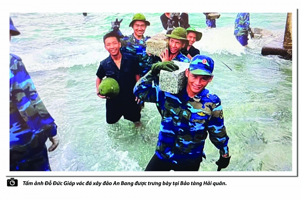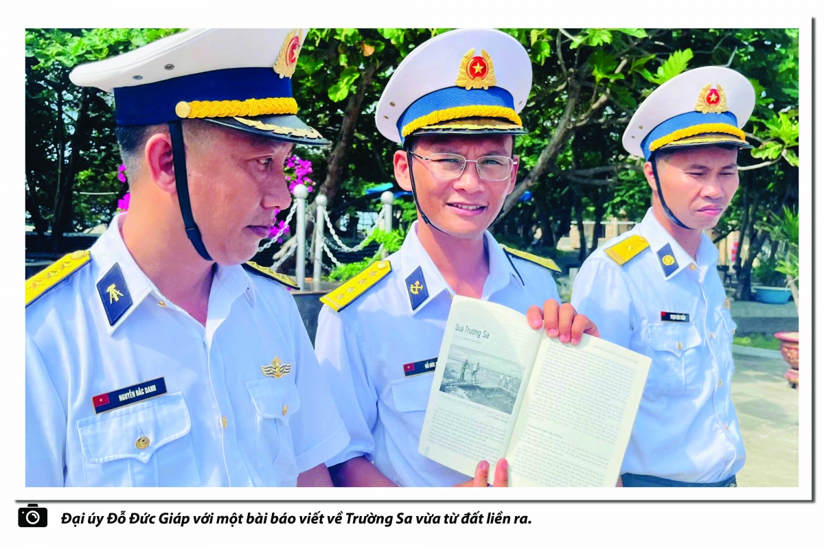 | Giáp có một niềm tự hào nho nhỏ khi anh cũng chính là một trong những người vác đá xây đảo An Bang, vùng đảo nổi tiếng sóng to gió lớn ở Trường Sa. Một người anh khi đi công tác ở Quân chủng cho Giáp biết tấm ảnh chụp anh đang “vác đá xây Trường Sa” được trưng bày ở Bảo tàng Quân chủng. Giáp thấy vui và tự hào vì điều đó. Ở Trường Sa có những người “thợ lính” rong ruổi trên những hành trình, họ là lực lượng làm nhiệm vụ trên các con tàu. Nguyễn Thế Anh là một người như thế. Trên con tàu KN 290, một chàng trai nhỏ nhắn, da ngăm đen, đeo kính chạy đi chạy lại giữa các bữa ăn. Hỏi chuyện, được biết Nguyễn Thế Anh vốn là Phó thuyền trưởng Tàu KN 220, thuộc Chi đội kiểm ngư số 2, Vùng 2 Hải quân, nhưng được tăng cường sang Tàu KN 290 để thực hiện nhiệm vụ trong chuyến ra khơi của chúng tôi lần này.