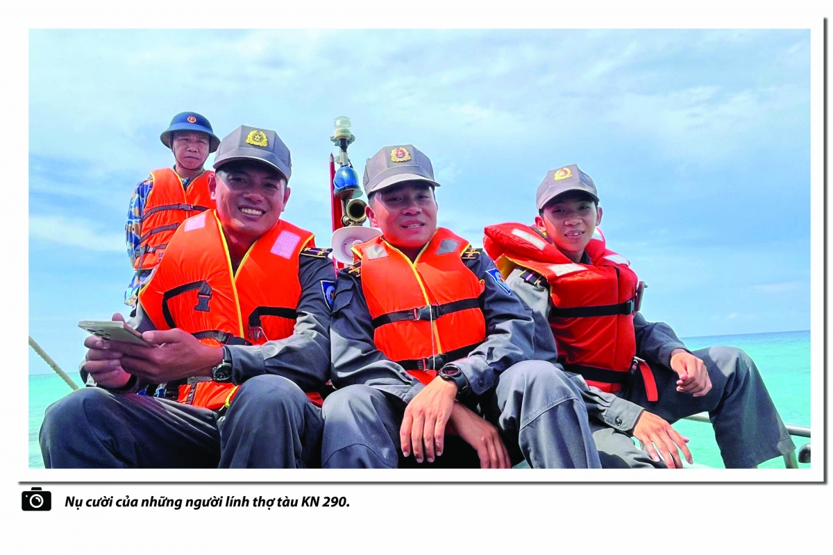 Trên Tàu KN 290, còn có chàng học viên trẻ ngành máy K65, Học viện Hải quân - Nguyễn Đình Phú Quốc. Cái tên của Quốc gắn liền với nơi anh sinh ra. Quốc sinh năm 2002, vốn là con nhà lính. Mẹ anh làm việc tại Vùng 5 Hải quân đóng tại huyện đảo Phú Quốc. Bố Quốc trước khi ra ngoài làm cũng từng là lính Tăng thiết giáp tại huyện đảo này. Bố mẹ lấy nhau, Quốc sinh ra tại đây, trong khi mọi người trong gia đình còn băn khoăn giữa hai tên gọi Phú hoặc Quốc để đặt cho giản dị thì ông nội anh đã quyết đặt cho cháu cái tên Nguyễn Đình Phú Quốc. Nơi làm việc tương lai của những thợ máy như Quốc là ở dưới khoang tàu, nơi được coi là ngột ngạt nhất, nóng nực nhất, ồn ào tiếng máy nhất trong cơ thể lớn của con tàu, như khoang máy của con tàu KN 290 mà Quốc đang thực tập đưa chúng tôi ra Trường Sa. Nhưng đó cũng là nơi duy trì cho con tàu có thể di chuyển trên mỗi hải trình. Sau chuyến thực tập này Quốc sẽ trở về trường để tiếp tục hoàn thiện chương trình, tham gia diễn tập cuối khóa trước khi tốt nghiệp. - Được về gần nhà thì cũng tốt nhưng một khi đã bước chân vào quân ngũ thì em nghĩ dù được phân công đi đâu em cũng sẽ vui vẻ hoàn thành tốt nhiệm vụ. Quốc trả lời khi tôi hỏi nguyện vọng sau ra trường có muốn về Vùng 5 Hải quân công tác cho gần nhà không.