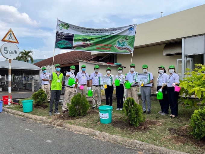 | Nhân viên Công ty TNHH Yazaki EDS Việt Nam (Bình Dương) tổ chức trồng cây hưởng ứng phong trào “Xanh - Sạch - Đẹp” và Ngày Môi trường thế giới 5/6/2022. Ảnh: CĐ Công ty. |