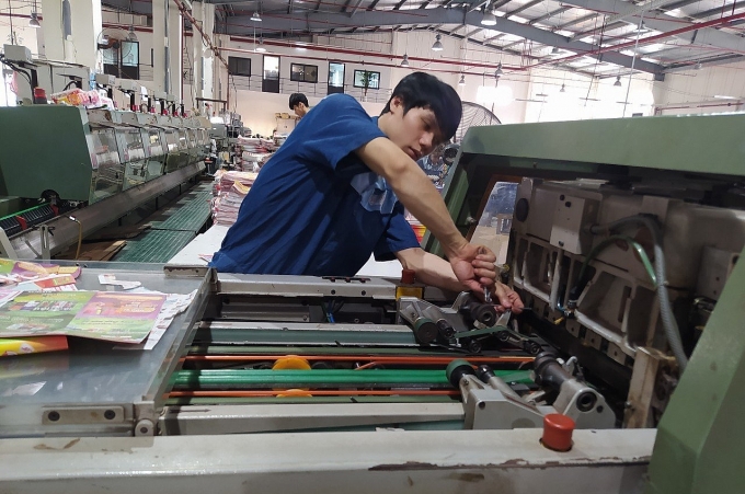 | Vệ sinh máy móc trước khi làm việc tại Công ty In Tiến bộ (TP. Hà Nội). Ảnh: CĐ Công ty. |