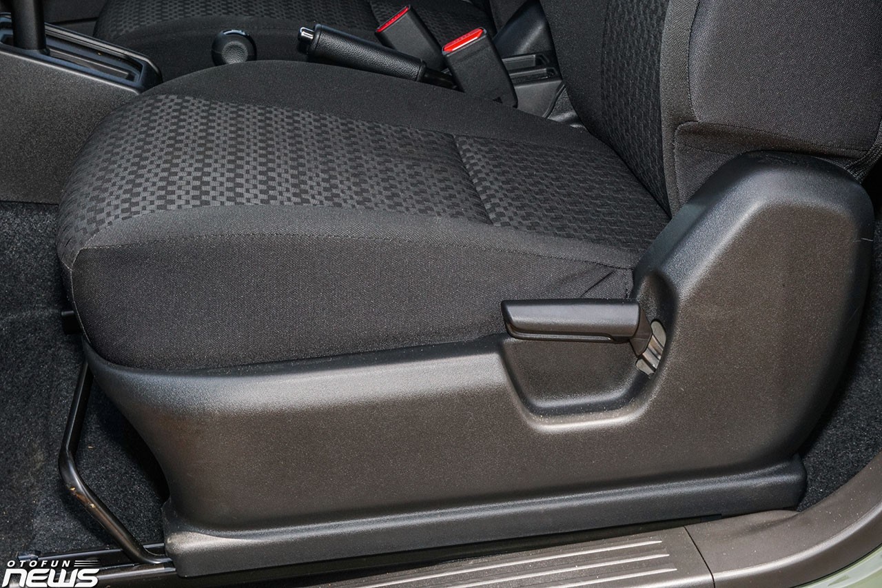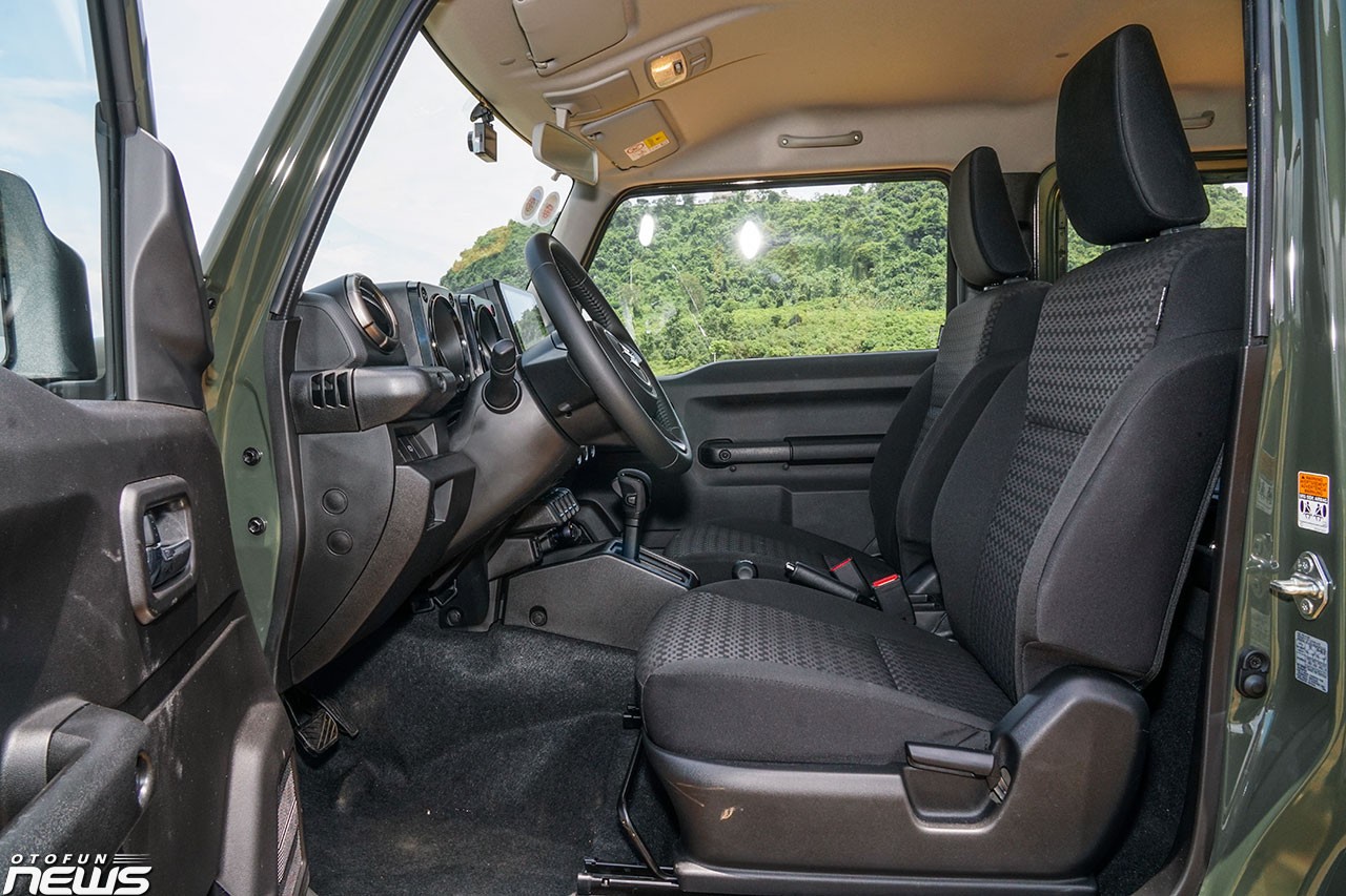 Suzuki Jimny sử dụng chìa khóa cơ nhưng vẫn có khóa/mở cửa từ xa. Các hàng ghế của xe được bọc nỉ, dễ gây nóng vào mùa hè. Ghế trước chỉ có thể chỉnh cơ, đặt trên ray trượt để tạo lối đi vào hàng ghế thứ hai. Việc ra vào hàng ghế thứ hai nhìn chung khá vất vả nếu chưa quen.
