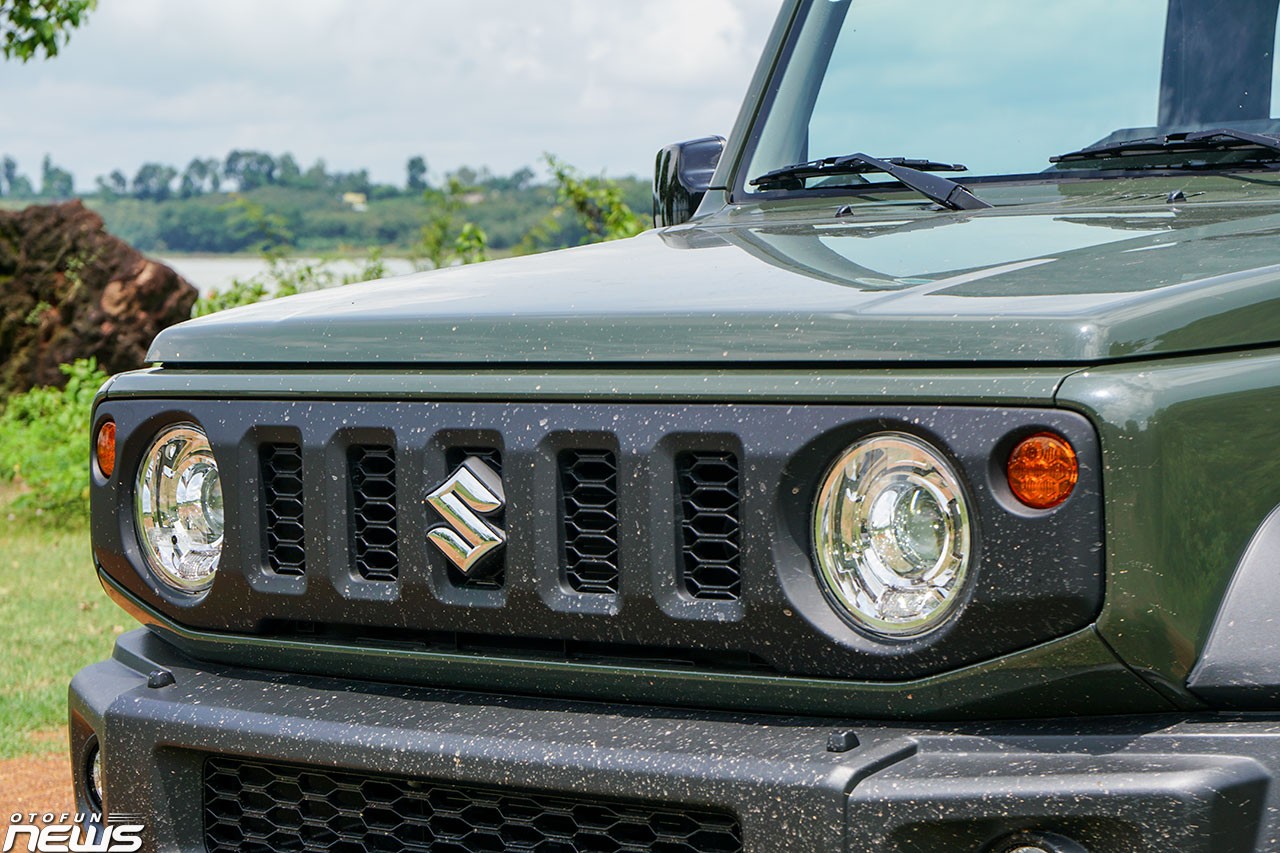 Phần đầu của Suzuki Jimny đặc biệt giống Mercedes-AMG G-Class với lưới tản nhiệt chính hình chữ Nhật bao quanh cụm đèn chiếu sáng tròn. Xe được trang bị đèn LED trước/sau, đèn pha có tính năng bật/tắt tự động. Riêng đèn sương mù sử dụng bóng Halogen.