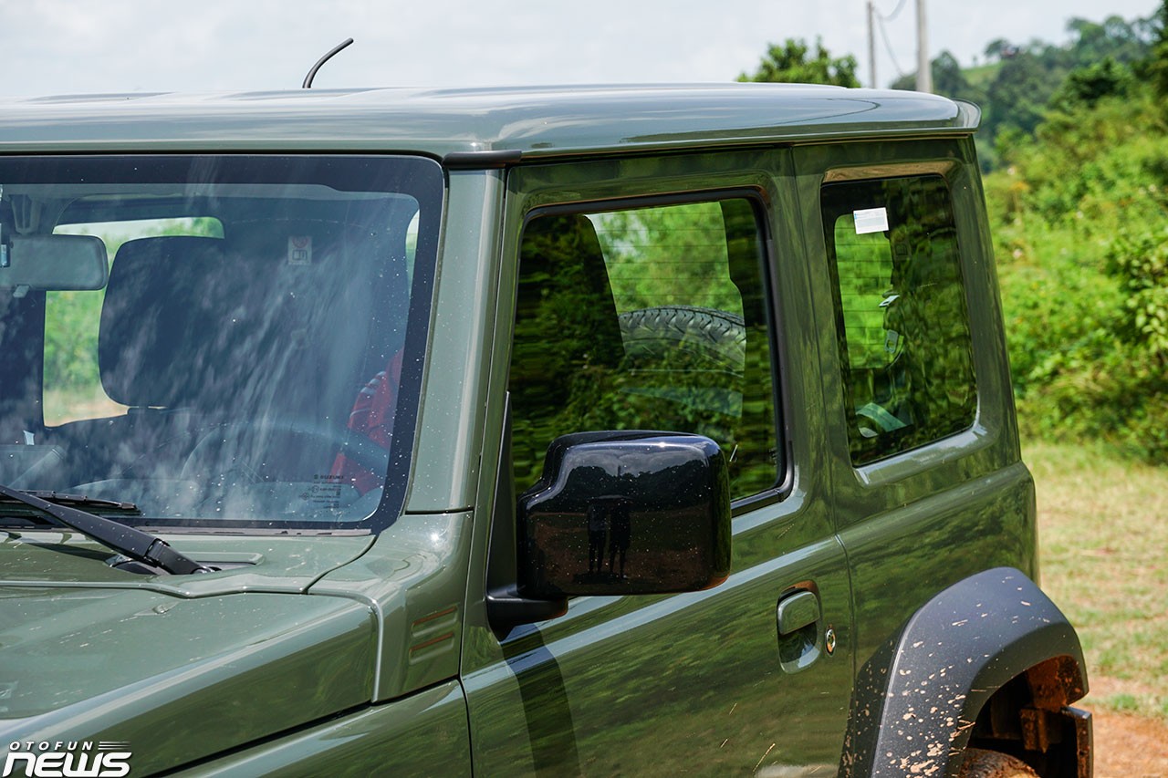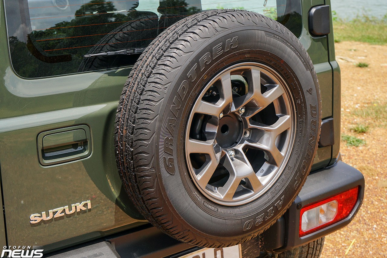 Suzuki Jimny sắp mớ bán tại Việt Nam thuộc bản ba cửa với chiều dài, chiều rộng và chiều cao lần lượt là 3.645 mm, 1.645 mm và 1.720 mm. Gương chiếu hậu của xe có tính năng chỉnh/gập điện, thiết kế bản to tương đối dễ quan sát. La-zăng của xe có kích cỡ 15 inch, thiết kế 5 chấu kép khá bắt mắt, đi kèm lốp Dunlop Grandtrek 195/80.