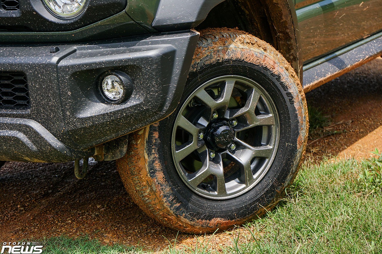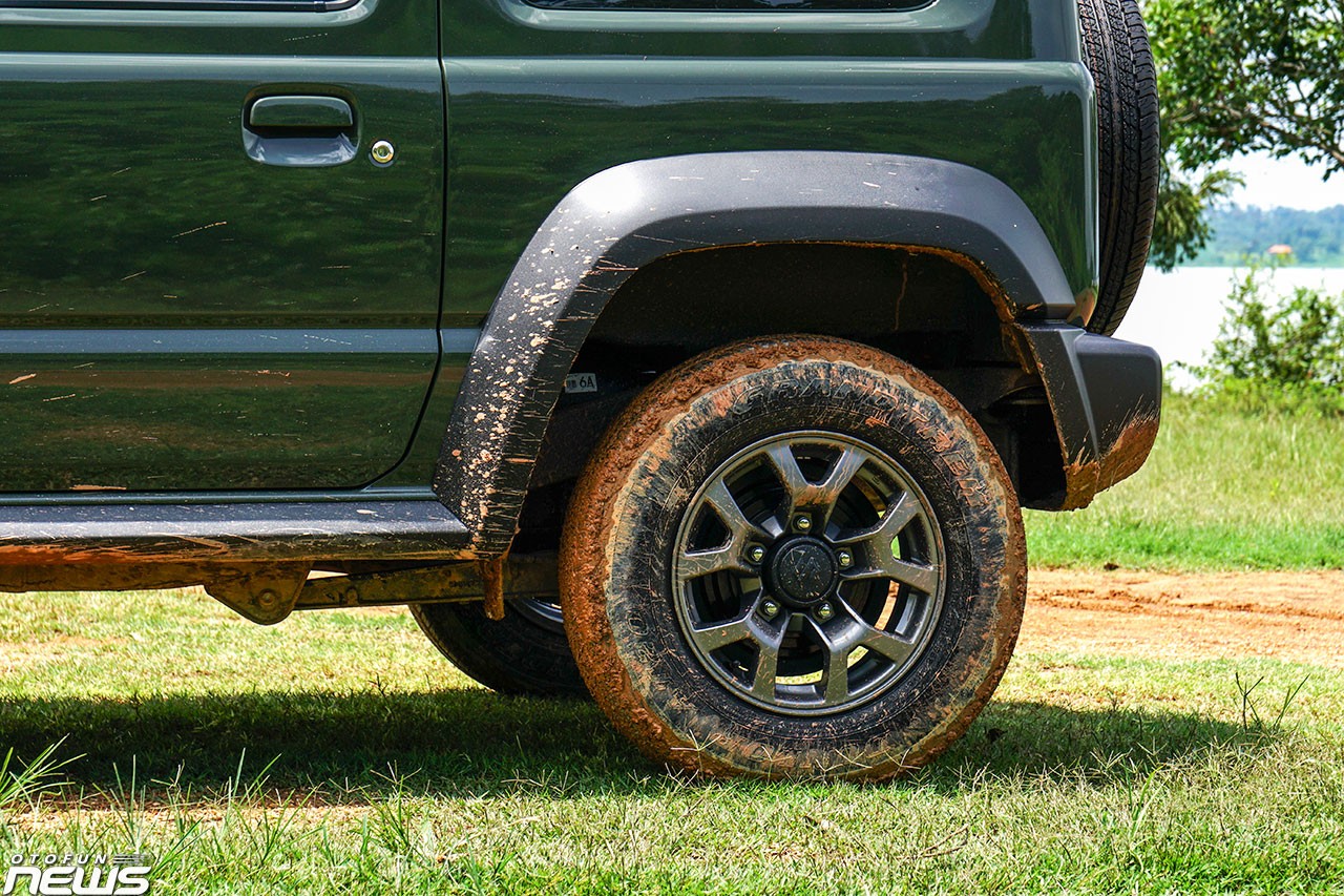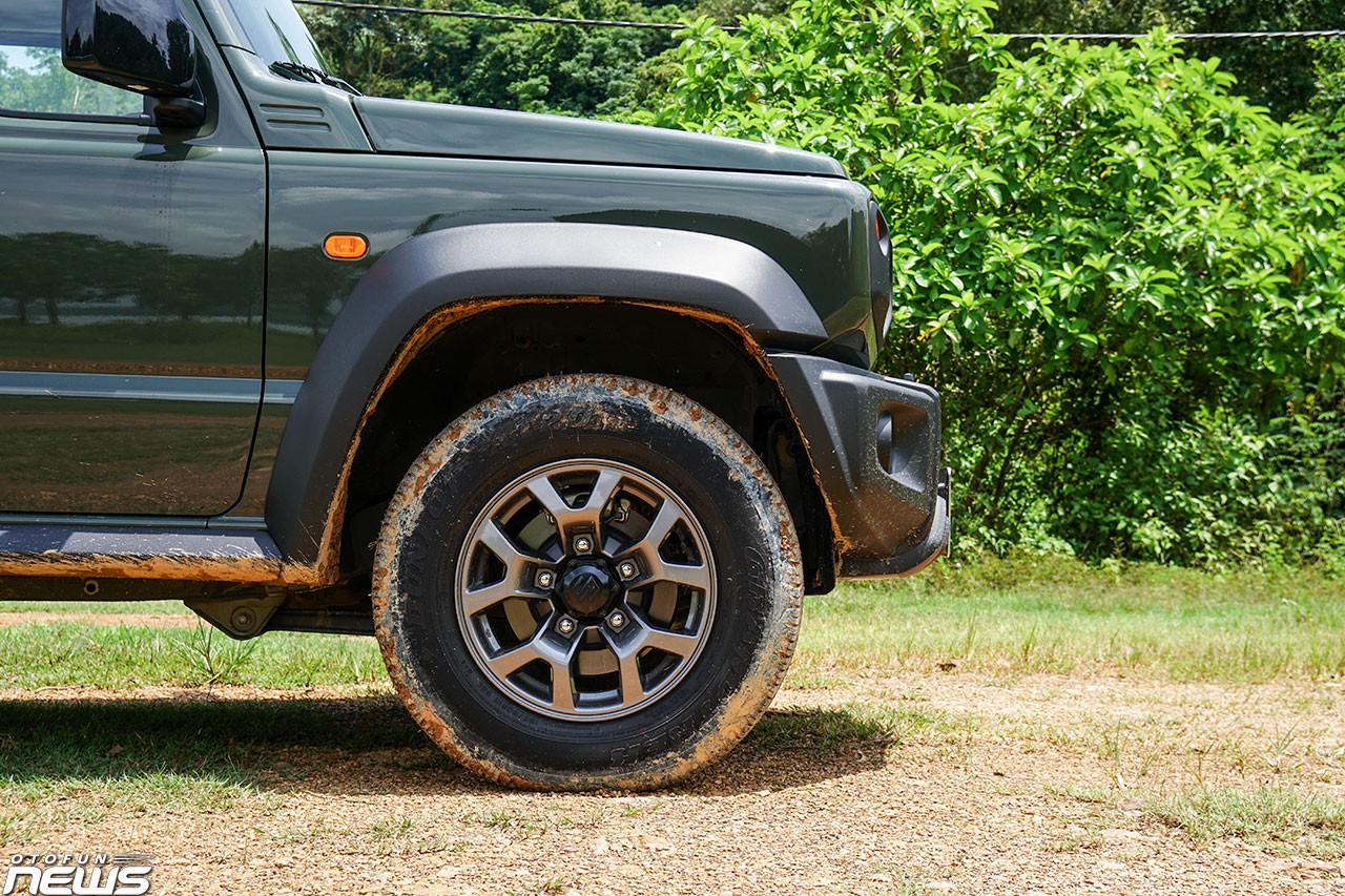 Khoảng sáng gầm xe không quá cao (210 mm) nhưng thừa đủ để giúp Jimny lội nước (tối đa 320 mm) hay trèo núi mà không cần người lái cẩn trọng quá nhiều. Góc tiếp cận lẫn góc thoát đều tốt nhờ kích cỡ xe, thậm chí vượt trội cả so với Jeep Wrangler.