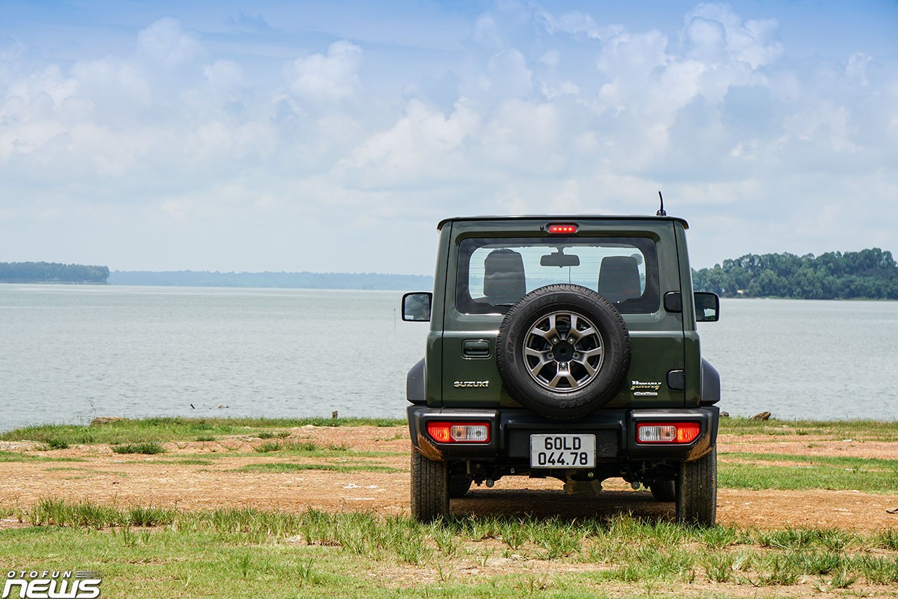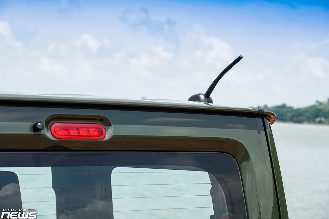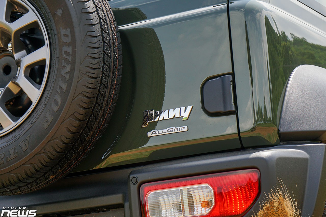 Gần hốc bánh trước có sự xuất hiện của xi-nhan, gắn trực tiếp vào thân xe. Bánh dự phòng được được gắn trực tiếp lên cửa sau. Đèn phanh và xi-nhan được đặt khá thấp, khiến phương tiện di chuyển phía sau khó quan sát. Bước vào bên trong, khoang cabin của Suzuki Jimny đem tới cảm giác quen thuộc.