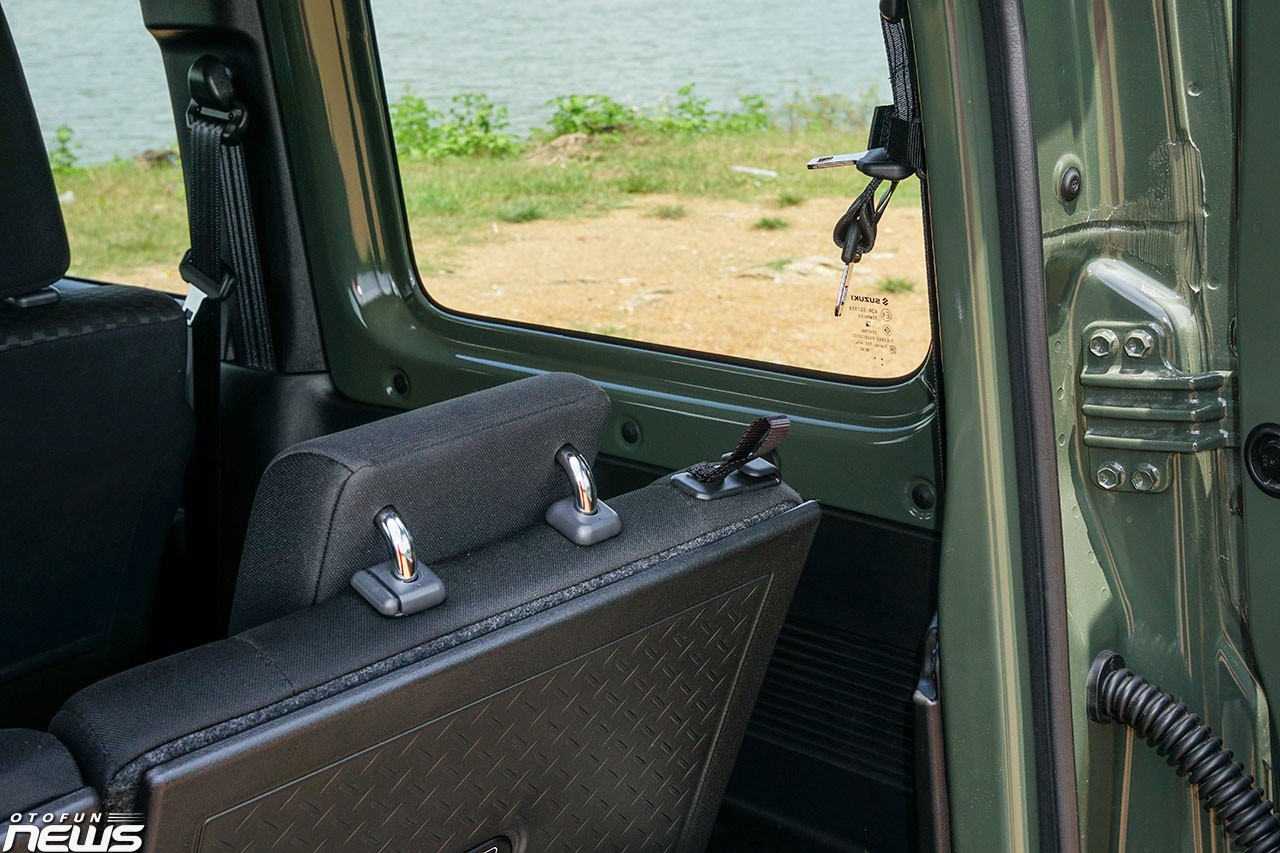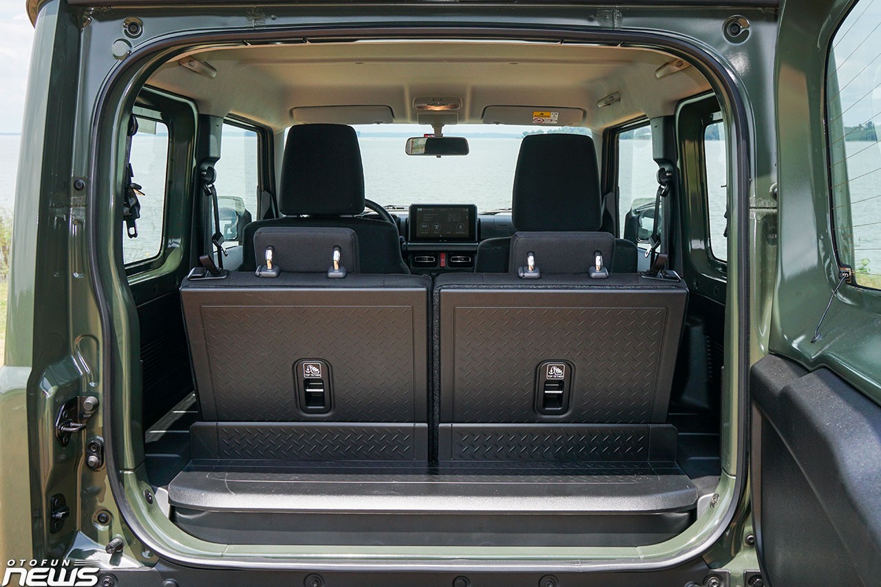 Hàng ghế thứ hai của Jimny khá rộng rãi, đủ chỗ ngồi cho hai người lớn nhưng do khá sát với sàn, việc để chân có thể gây khó chịu khi di chuyển đường dài. Khoang hành lý của Suzuki Jimny chỉ có thể tích 85 lít, lên tới 388 lít khí gập phẳng hàng ghế thứ hai. Bên trái hàng ghế thứ hai có một cổng sạc tẩu 120W.