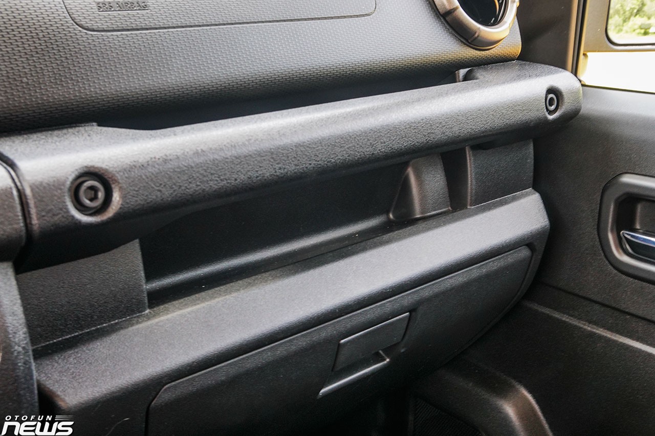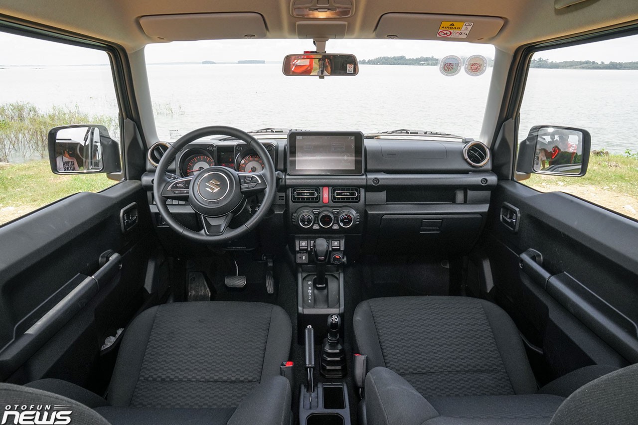 Tổng thể nội thất có phần giống “người anh em” Swift nhưng được tinh chỉnh để đem tới cảm giác khỏe khoắn hơn. Táp-lô bên phía ghế phụ còn có tay nắm đặt ngang khá lớn, giúp hành khách chủ động ổn định khi di chuyển trên địa hình phức tạp. Có giá dự kiến lên tới 900 triệu đồng nhưng nội thất của Suzuki Jimny sử dụng chủ yếu chất liệu nhựa và nỉ.