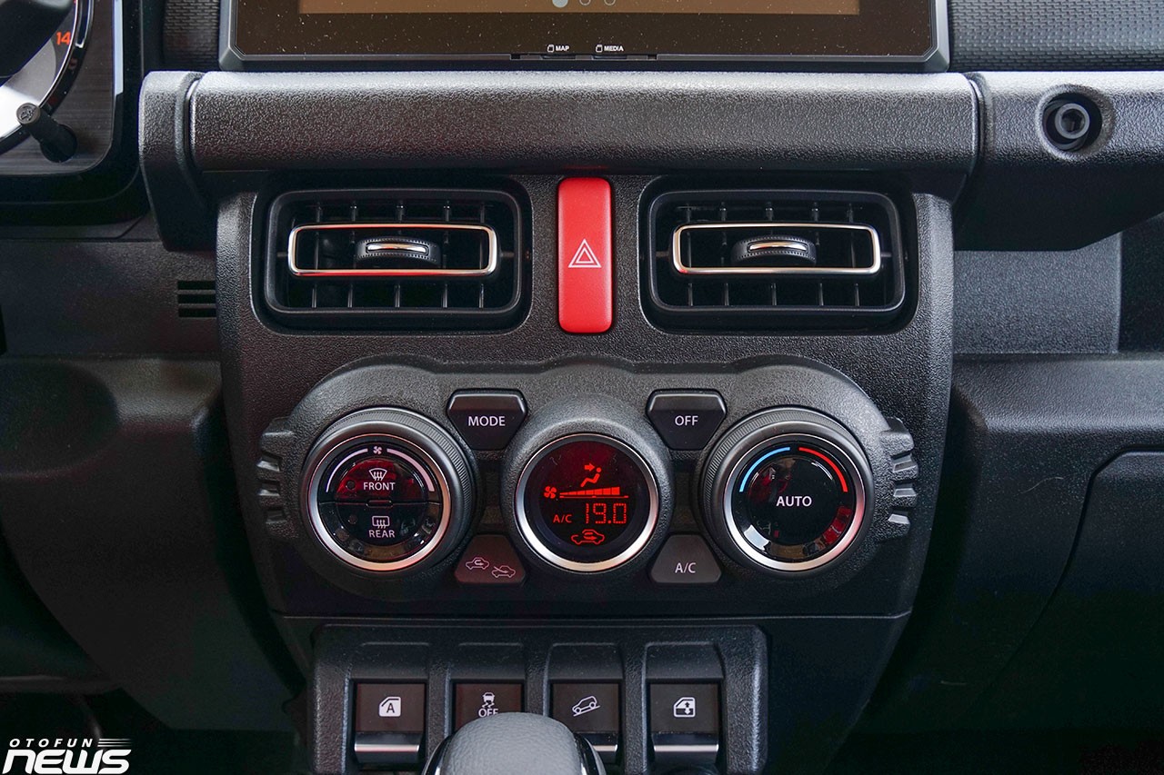 Xe được trang bị hệ thống điều hòa tự động một vùng, không có cửa gió cho hàng ghế sau. Phía dưới núm xoay chỉnh điều hòa là các phím bấm vật lý tắt/bật cân bằng điện tử và kích hoạt khởi hành ngang dốc. Đáng chú ý là hai nút ngoài cùng lại để nâng/hạ cửa kính, thiết kế khác biệt với ô tô truyền thống.