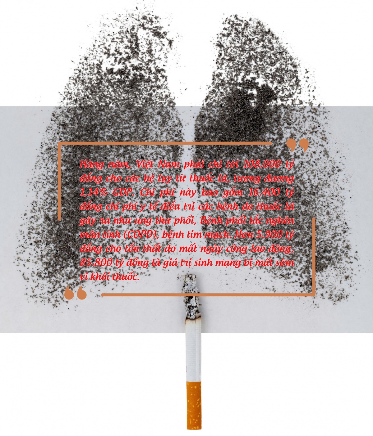 Ở Việt Nam, chỉ cần 7.000–10.000 đồng là đã có thể mua một bao thuốc lá, số tiền tương đương hai bữa sáng của một đứa trẻ nông thôn. Mức giá này được WHO đánh giá là thấp gần nhất khu vực Tây Thái Bình Dương, khi quy đổi theo sức mua (PPP), chỉ bằng 2,8 USD quốc tế. Thế nhưng, thuốc rẻ không bao giờ đồng nghĩa với “vô hại”. Trái lại, nó là ngưỡng cửa mời gọi, là cạm bẫy cho những người trẻ tuổi bắt đầu hút thử, cho người nghèo tiếp tục lệ thuộc và cho xã hội tiếp tục âm thầm “chảy máu” kinh tế lẫn sinh mạng. Người hút thuốc, phần lớn là lao động phổ thông, nông dân, người nghèo thành thị… đây là những người có thu nhập thấp. Tuy nhiên, họ lại chi một tỷ lệ thu nhập lớn cho thuốc lá. Với một người hút 1 bao/ngày, chi phí hàng tháng khoảng 300.000–400.000 đồng, gần bằng tiền ăn cho cả gia đình vài ngày. Trong vòng 10 năm, một người hút thuốc có thể “đốt” tới 50–70 triệu đồng, tương đương học phí đại học của con. Thuốc lá rẻ làm người nghèo nghèo hơn, không chỉ vì mất tiền mà còn vì họ mang trong mình nhiều bệnh tật hơn, làm việc kém năng suất hơn và có nguy cơ tử vong sớm hơn. Hàng năm, Việt Nam phải chi tới 108.000 tỷ đồng cho các hệ lụy từ thuốc lá, tương đương 1,14% GDP. Chi phí này bao gồm 16.400 tỷ đồng chi phí y tế điều trị các bệnh do thuốc lá gây ra như ung thư phổi, Bệnh phổi tắc nghẽn mãn tính (COPD), bệnh tim mạch. Hơn 5.900 tỷ đồng cho tổn thất do mất ngày công lao động, 85.800 tỷ đồng là giá trị sinh mạng bị mất sớm vì khói thuốc.