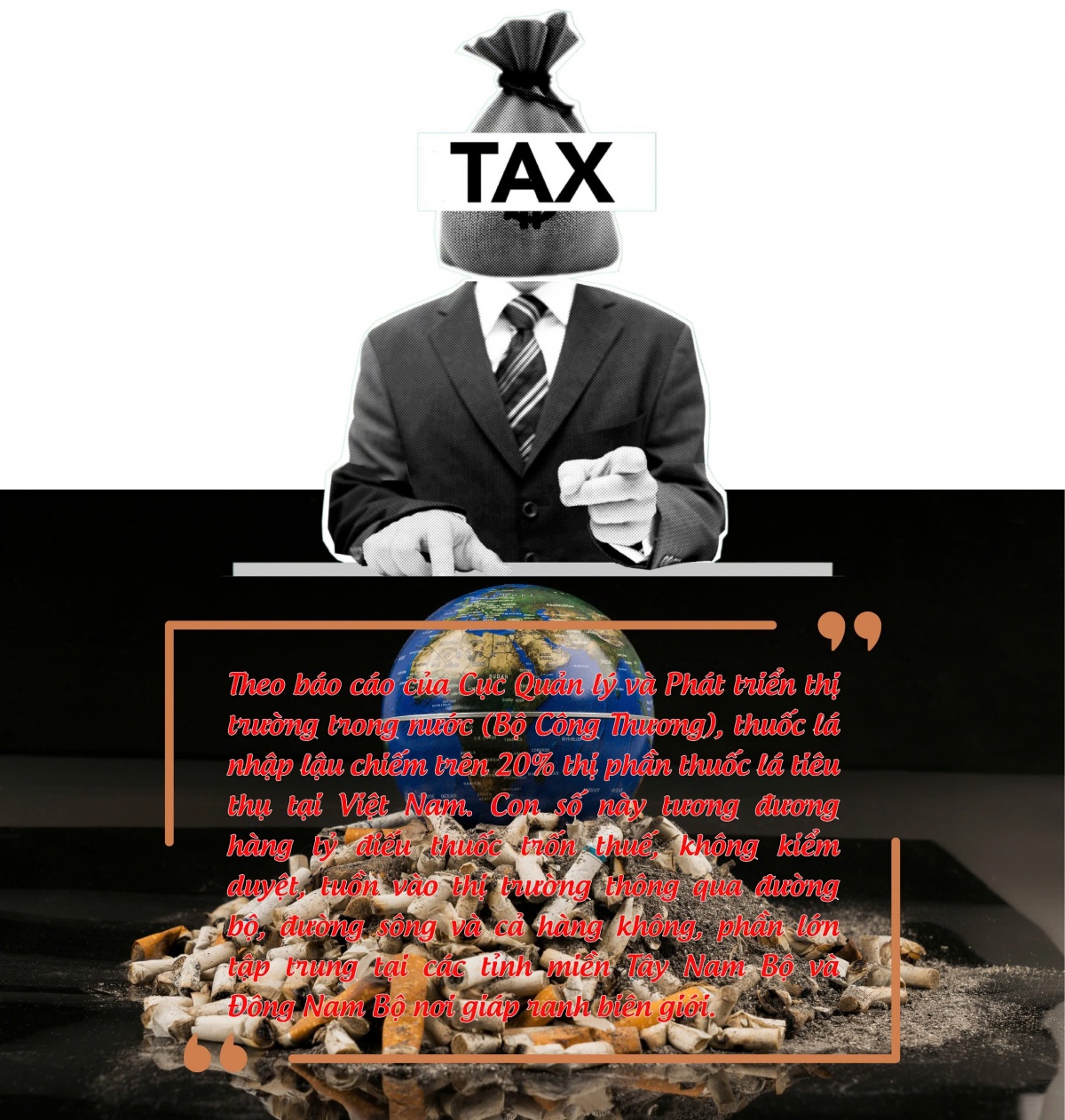 Theo báo cáo của Cục Quản lý và Phát triển thị trường trong nước (Bộ Công Thương), thuốc lá nhập lậu chiếm trên 20% thị phần thuốc lá tiêu thụ tại Việt Nam. Con số này tương đương hàng tỷ điếu thuốc trốn thuế, không kiểm duyệt, tuồn vào thị trường thông qua đường bộ, đường sông và cả hàng không, phần lớn tập trung tại các tỉnh miền Tây Nam Bộ và Đông Nam Bộ nơi giáp ranh biên giới. Các sản phẩm này không dán tem thuế, không cảnh báo sức khỏe bằng hình ảnh. Có hàm lượng nicotine và tar cao hơn quy định, nhưng không bị kiểm tra chất lượng. Được bán tràn lan ngoài chợ, cửa hàng nhỏ, với giá rẻ hơn thuốc lá chính ngạch từ 30–50%. Chủ yếu là các nhãn hiệu như Jet, Hero, được người nghiện thuốc ưa chuộng vì “đậm vị”, nhưng cũng đậm chất nguy hiểm cho sức khỏe. Hậu quả nghiêm trọng của thuốc lá nhập lậu gây thất thu ngân sách nghiêm trọng. Mỗi năm, thuốc lá lậu khiến ngân sách nhà nước thất thu hàng nghìn tỷ đồng tiền thuế – một nguồn lực đáng lẽ được dùng để đầu tư vào y tế, giáo dục, phòng chống tác hại thuốc lá. Hủy hoại chính sách thuế và kiểm soát thuốc lá. Trong khi Nhà nước nỗ lực tăng thuế để giảm tỷ lệ hút thuốc, thì thuốc lá lậu lại trở thành “lối thoát rẻ tiền” cho người nghiện, làm giảm hiệu quả của các chính sách y tế công cộng. Đầu độc người dân bằng sản phẩm không kiểm định. Không được quản lý bởi cơ quan chức năng, thuốc lá lậu có thể chứa chất phụ gia độc hại, thuốc trừ sâu, kim loại nặng, với nguy cơ gây ung thư, đột quỵ và tổn thương hệ thần kinh cao hơn.