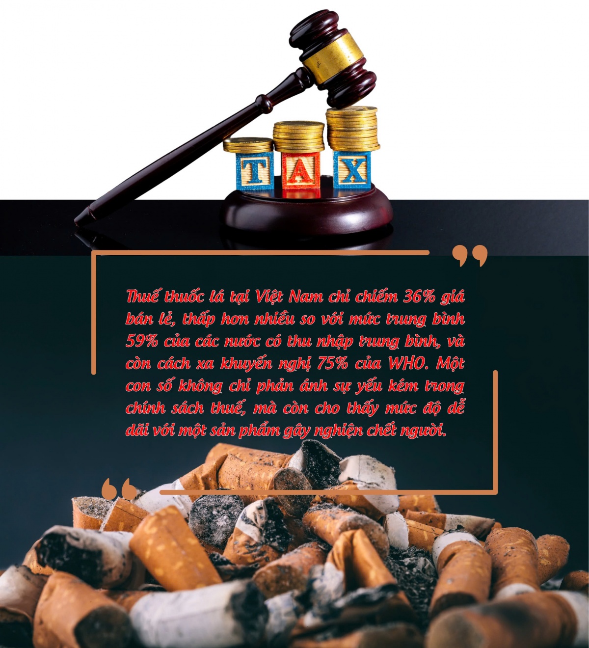 Khi mỗi năm có hơn 103.000 người Việt chết vì thuốc lá, khi ngân sách quốc gia gánh hàng trăm nghìn tỷ đồng thiệt hại y tế và khi khói thuốc đang len lỏi từ quán cà phê đến lớp học dưới hình hài mới, từ điếu thuốc truyền thống đến điếu vape sáng bóng. Đã đến lúc Việt Nam cần một “cú hích” chính sách mạnh mẽ, tăng thuế thuốc lá lên mức đủ sức răn đe và quản lý thật chặt thuốc lá nhập lậu, đặc biệt là thuốc lá điện tử. Nếu không làm ngay hôm nay, chúng ta sẽ đánh mất cả một thế hệ vào những làn khói độc hại không kiểm soát. Với giá một bao thuốc chỉ từ 7.000 đồng, Việt Nam nằm trong nhóm các nước có thuốc lá rẻ nhất thế giới. Thật nghịch lý, bởi thứ rẻ mạt ấy lại đang tiêu tốn hơn 108.000 tỷ đồng mỗi năm, tương đương 1,14% GDP, cho các chi phí y tế, tử vong sớm và tổn thất lao động. Thuế thuốc lá tại Việt Nam chỉ chiếm 36% giá bán lẻ, thấp hơn nhiều so với mức trung bình 59% của các nước có thu nhập trung bình, và còn cách xa khuyến nghị 75% của WHO. Một con số không chỉ phản ánh sự yếu kém trong chính sách thuế, mà còn cho thấy mức độ dễ dãi với một sản phẩm gây nghiện chết người. Người nghèo chiếm đa số trong số những người hút thuốc. Không phải vì họ muốn chết sớm, mà vì thuốc lá quá rẻ, quá dễ mua, quá phổ biến. Chỉ cần vài ngàn đồng, họ có thể duy trì thói quen ‘tự giết mình” từng ngày thay vì đầu tư vào bữa ăn, thuốc men hay học hành cho con.